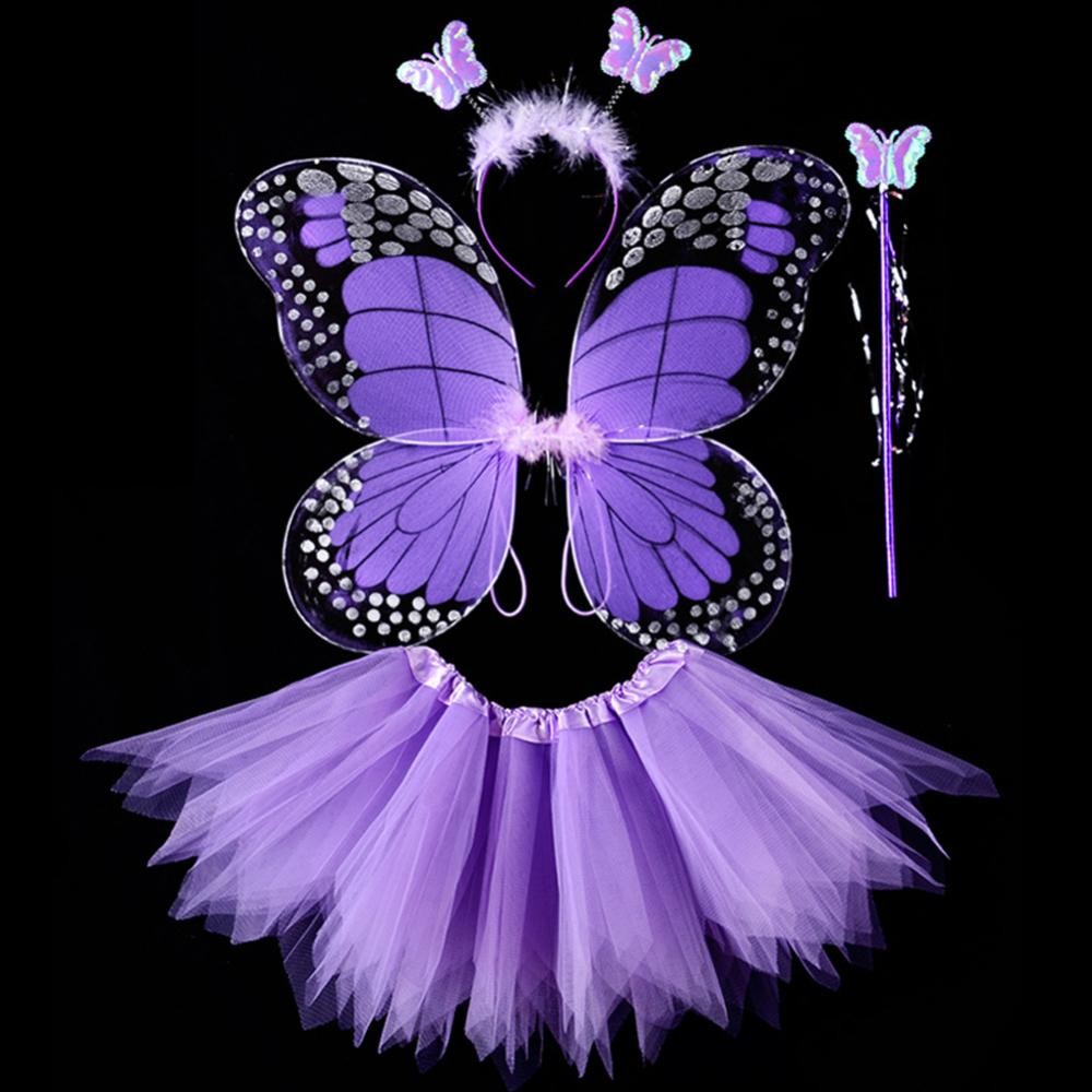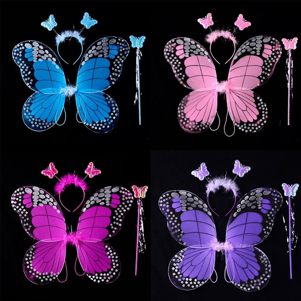 ใช่ 3/4ชิ้นเด็กปีกผีเสื้อชุดสาวผีเสื้อชุดคาดศีรษะคันฮาโลวีนพรรคเครื่องแต่งกายเด็กนางฟ้าอุปกรณ์ประกอบฉากถ่ายภาพคริสต์มาสเสื้อผ้าอุปกรณ์ประกอบฉาก ยู9ย4
