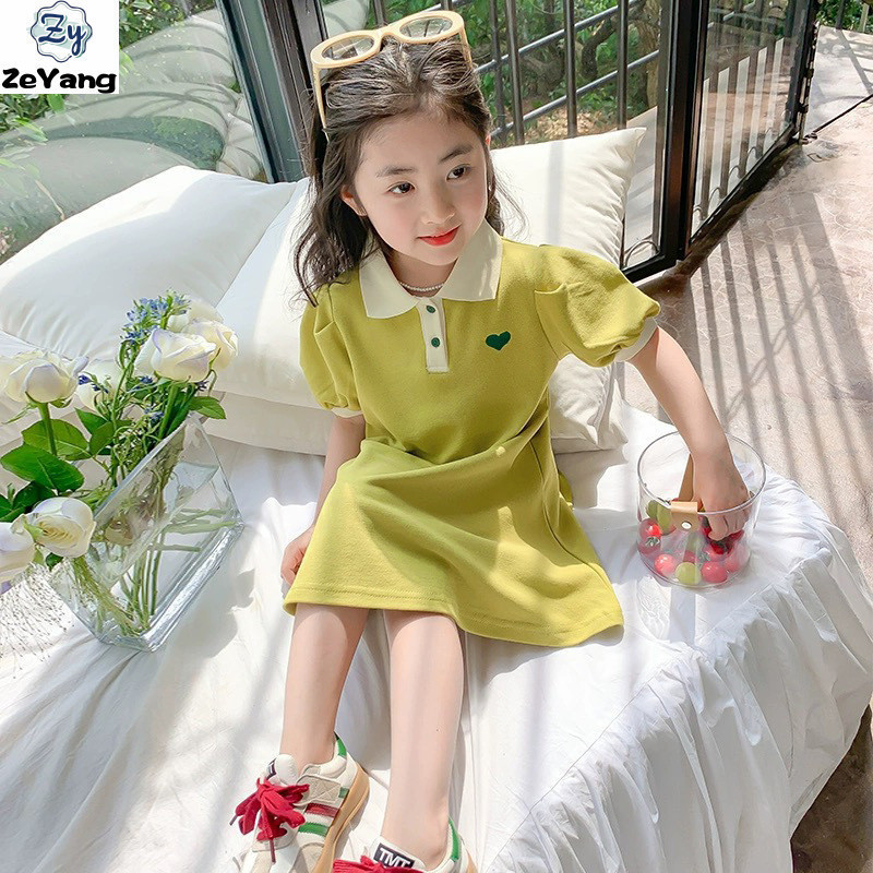 [ZY]70-150 พร้อมส่ง ชุดเดรสกระโปรงโปโล แขนสั้น ทรงเอ ผ้าฝ้าย ประดับลูกปัด สีพื้น เข้ากับทุกการแต่งกาย แฟชั่นเจ้าหญิง สําหรับเด็กผู้หญิง