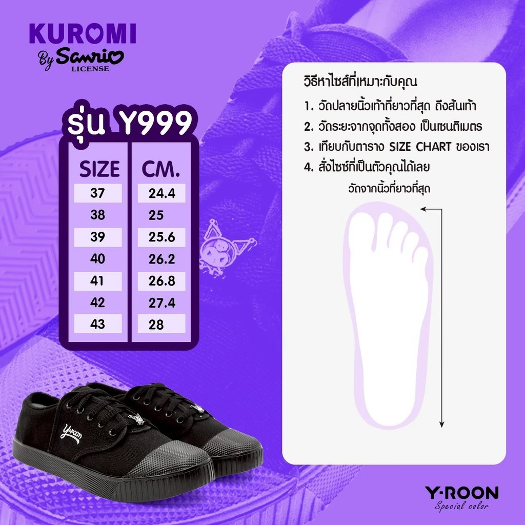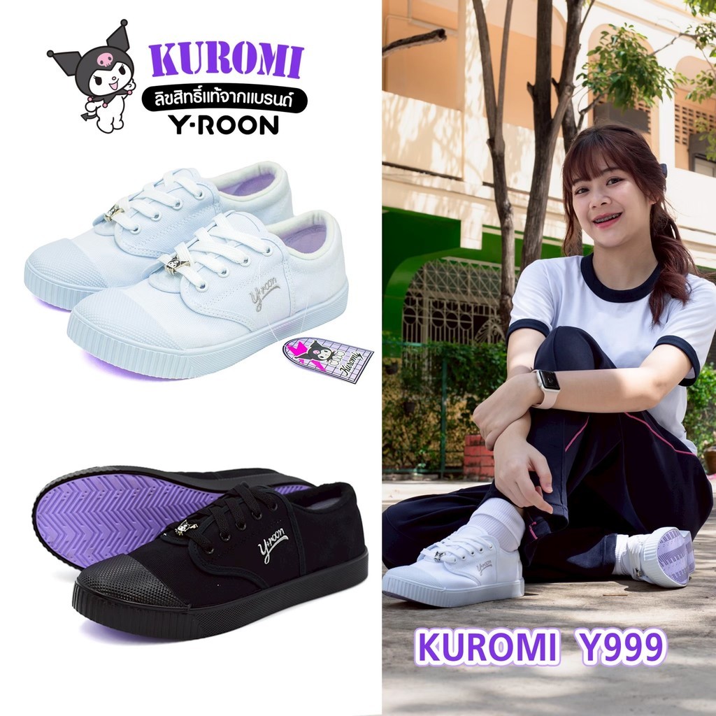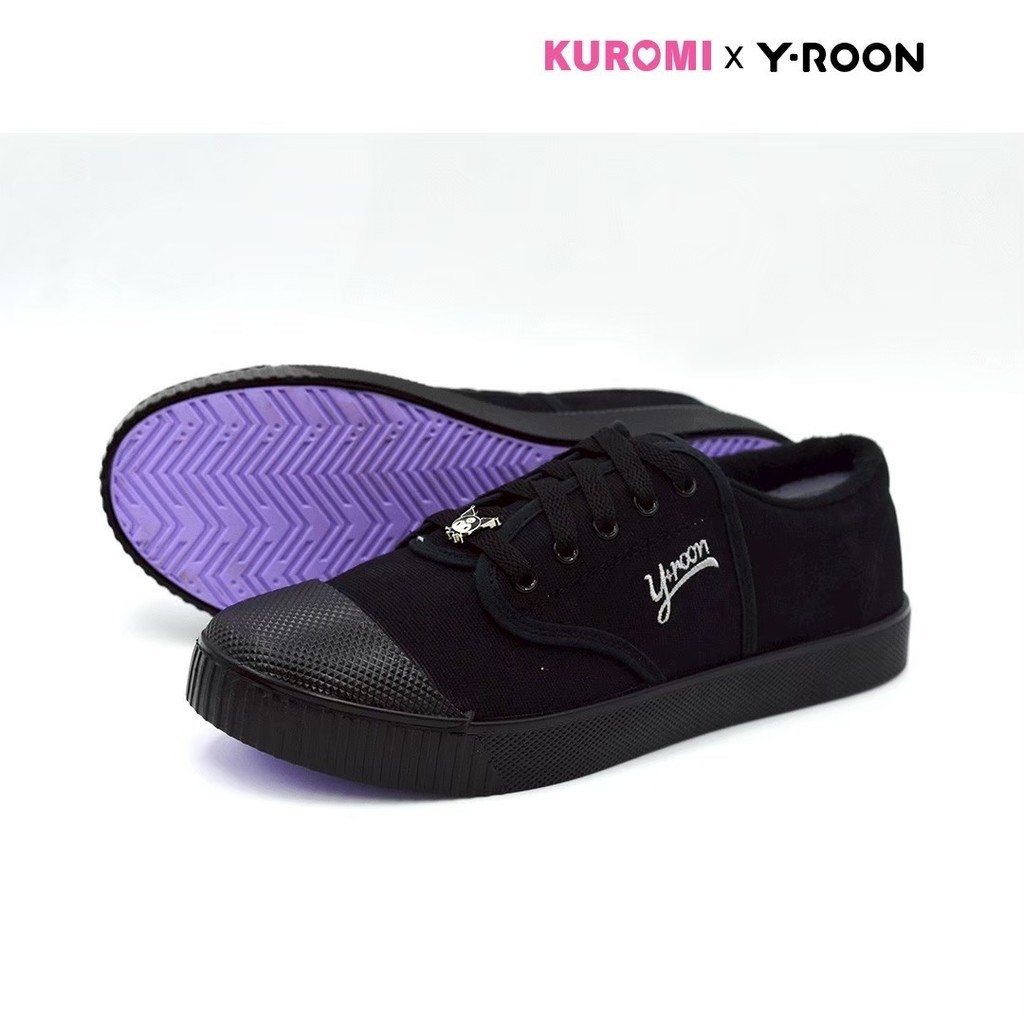 🛵ส่งทันที 2 ชม.🏪💫Y-ROON รองเท้าผ้าใบนักเรียนชาย รุ่นY999 สีดำ ลายคุโรมิ Kuromi พื้นม่วง💜ลิขสิทธิ์แท้
