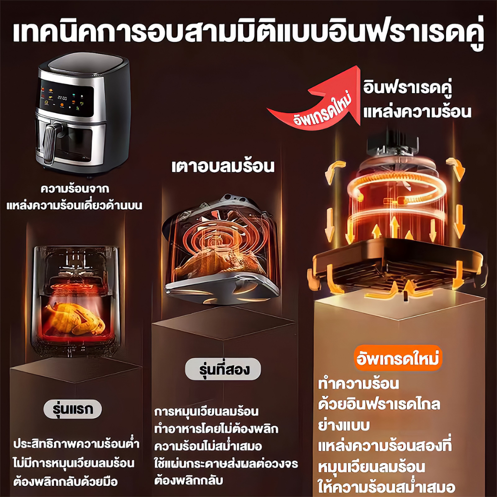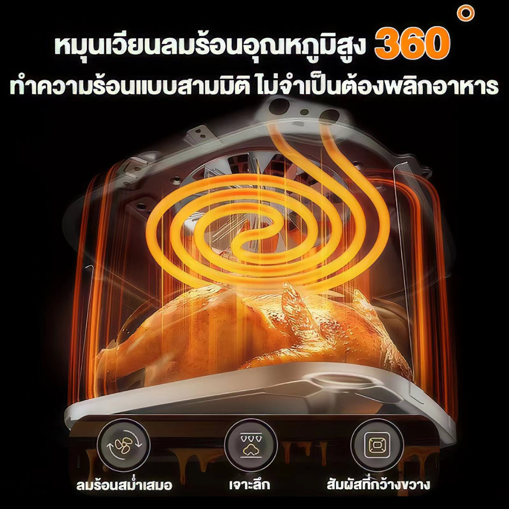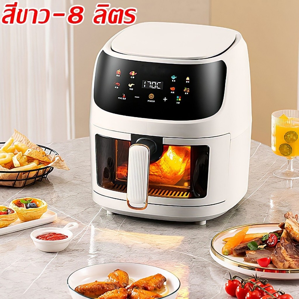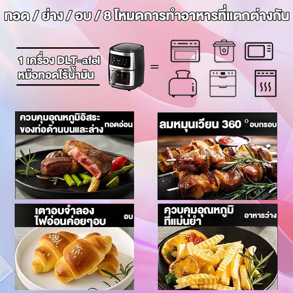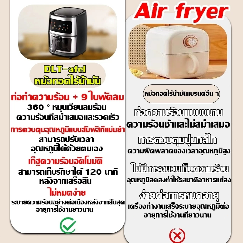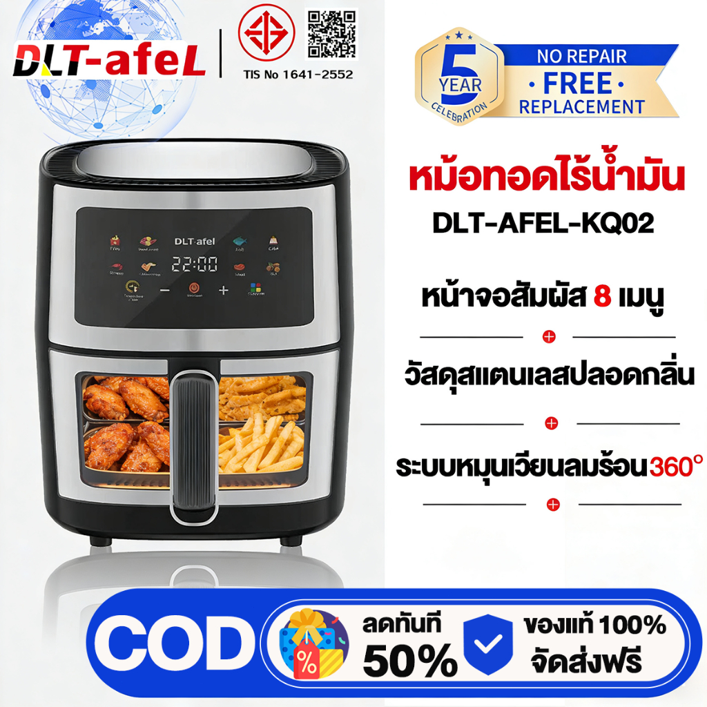 DLT-afel หม้อทอดไร้น้ํามัน 8L ตัวเครื่องสแตนเลส พาโนรามา ไม่จําเป็นต้องพลิกอาหาร หม้อทอดไร้มัน air fryer รับประกันตลอดช