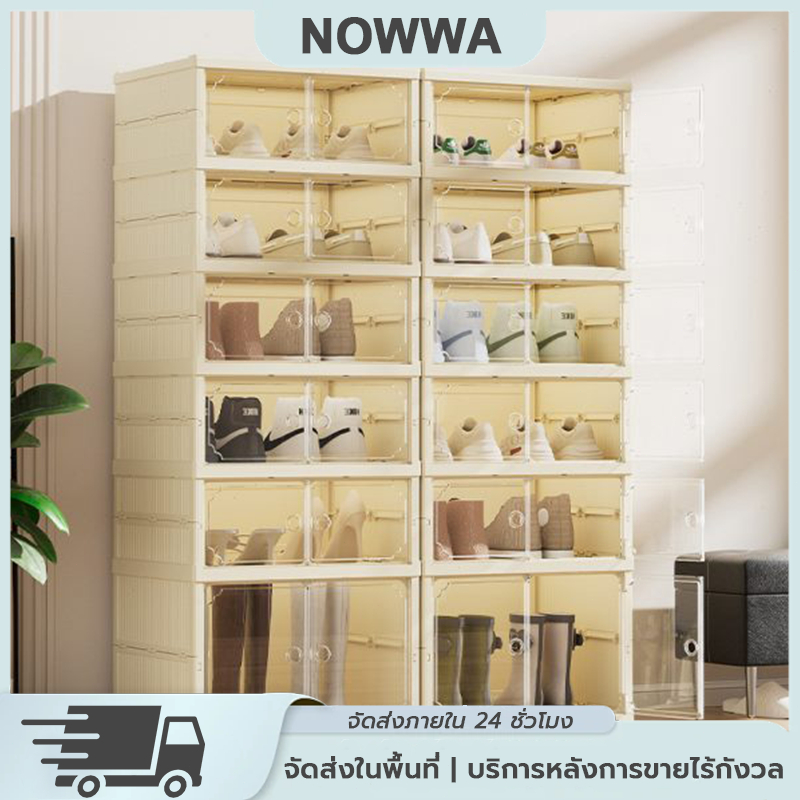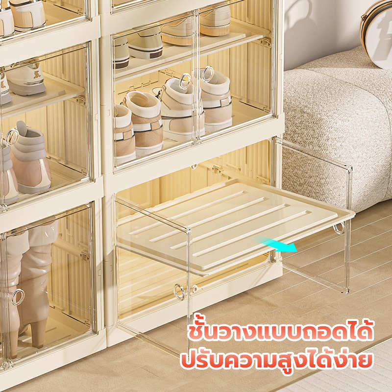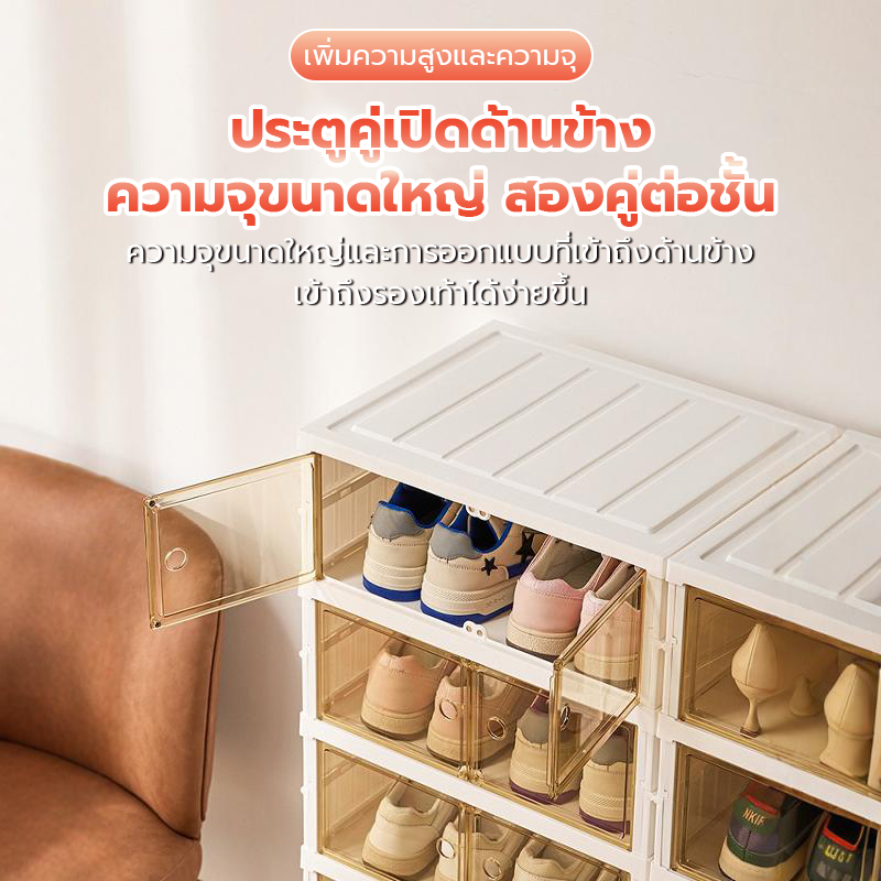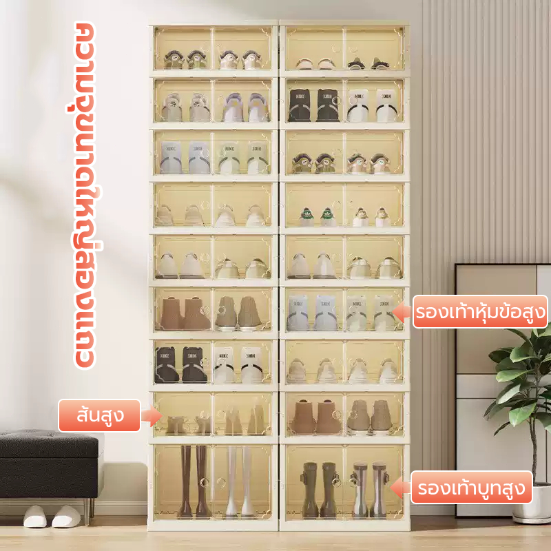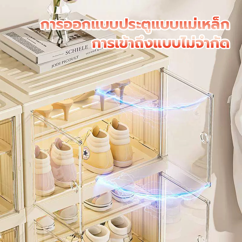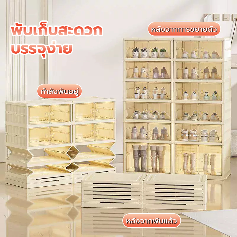 แผ่นอะคริลิกพับกล่องรองเท้า กล่องเก็บรองเท้าติดตั้งฟรี ชั้นวางรองเท้า กล่องเก็บรองเท้า