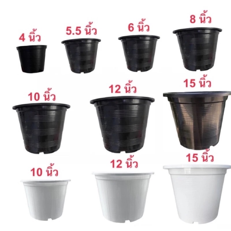 พร้อมส่ง กระถางต้นไม้พลาสติกสีดำ 4 นิ้ว 5.5 นิ้ว 6 นิ้ว 8 นิ้ว 10 นิ้ว