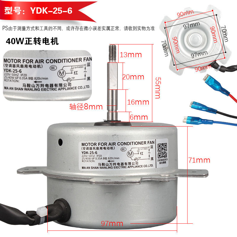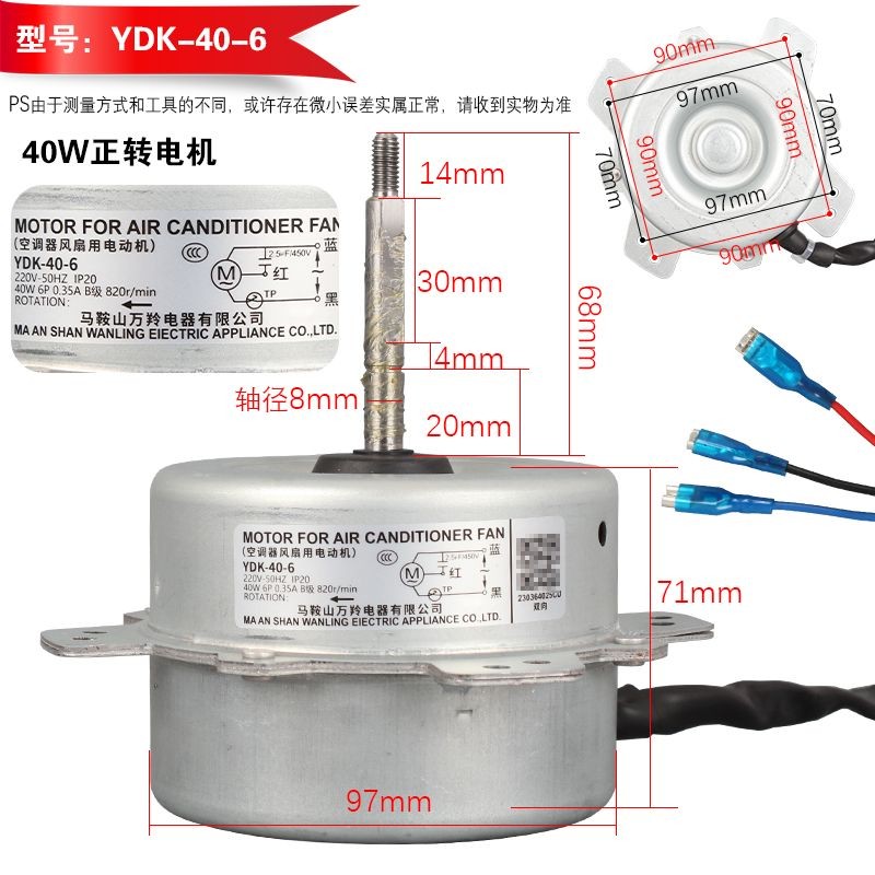 โมเตอร์พัดลมยูนิตแอร์กลางแจ้ง YDK-40-6 ไปข้างหน้าและข้างหลัง แบบยูนิเวอร์แซล 1 แรงม้า 1.5P โมเตอร์พัดลมกลางแจ้ง ลวดทองแด
