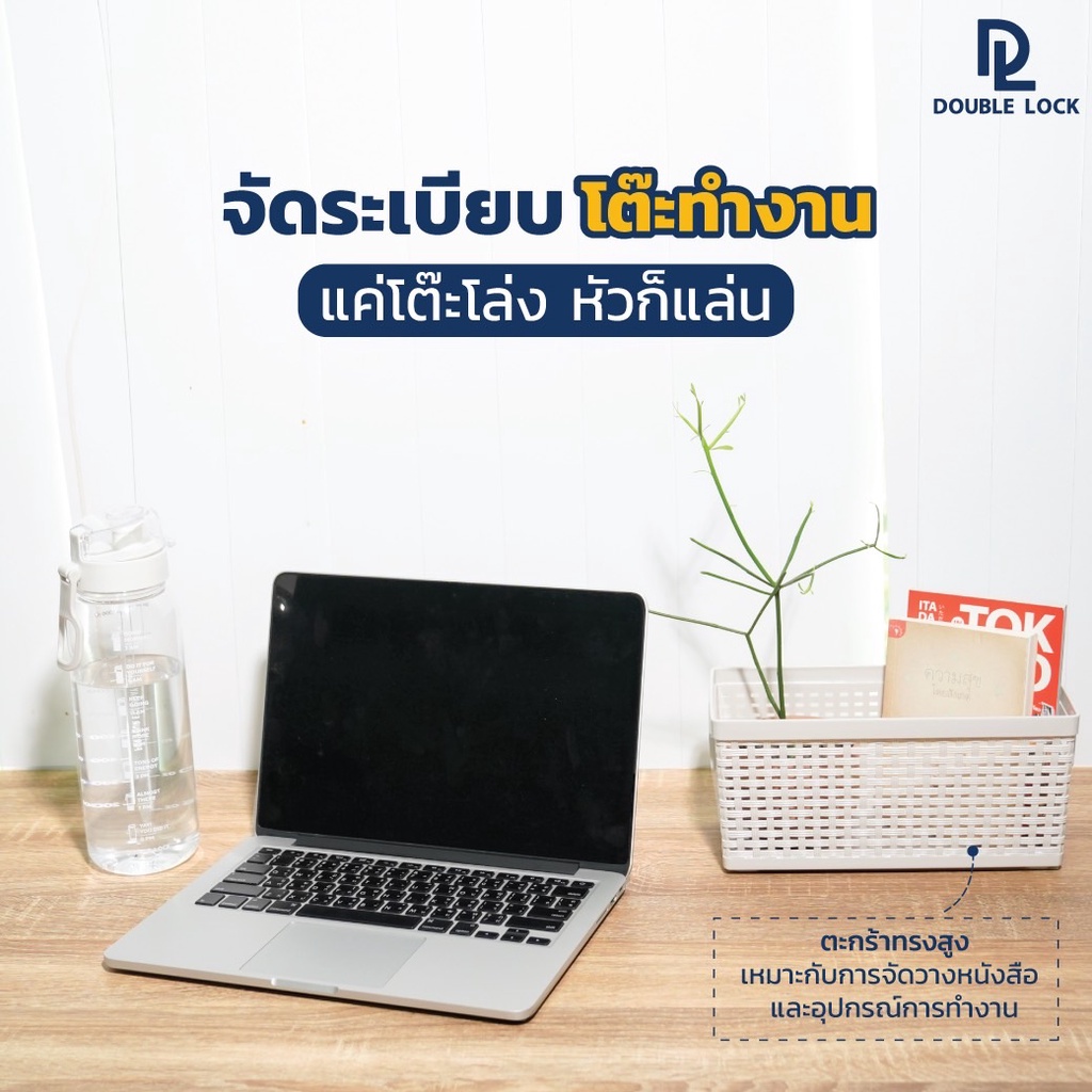 Double Lock ตะกร้าพลาสติก ลายหวายเก็บของอเนกประสงค์ รุ่น 3121(1)