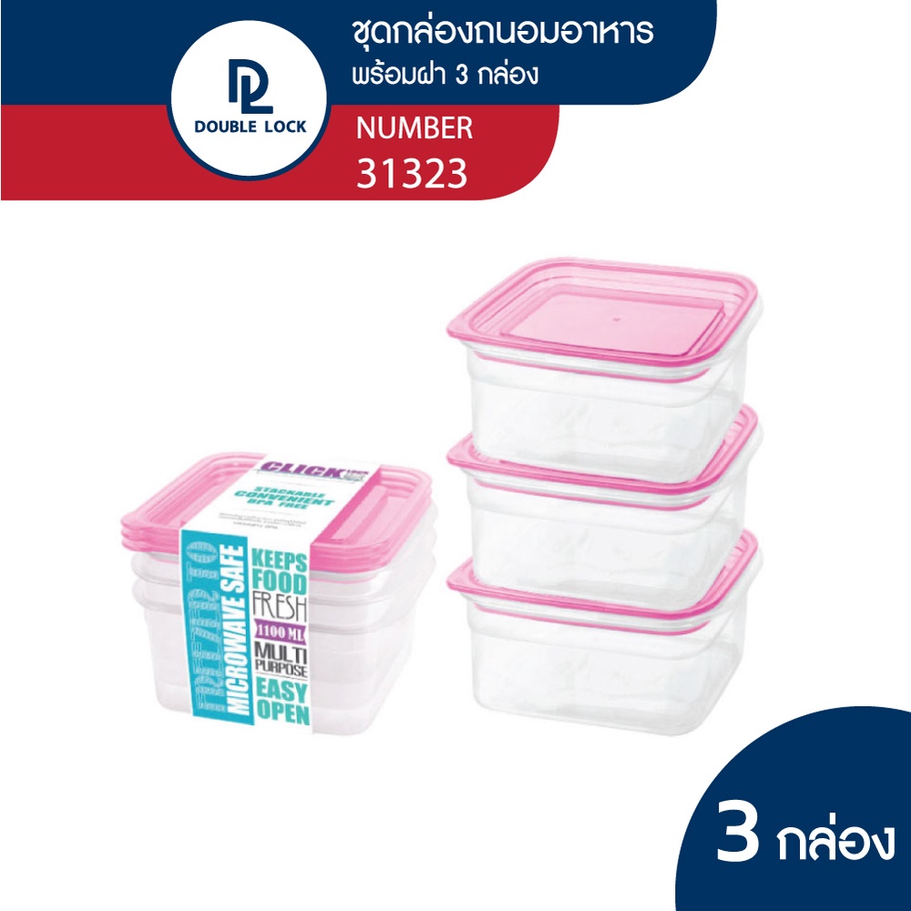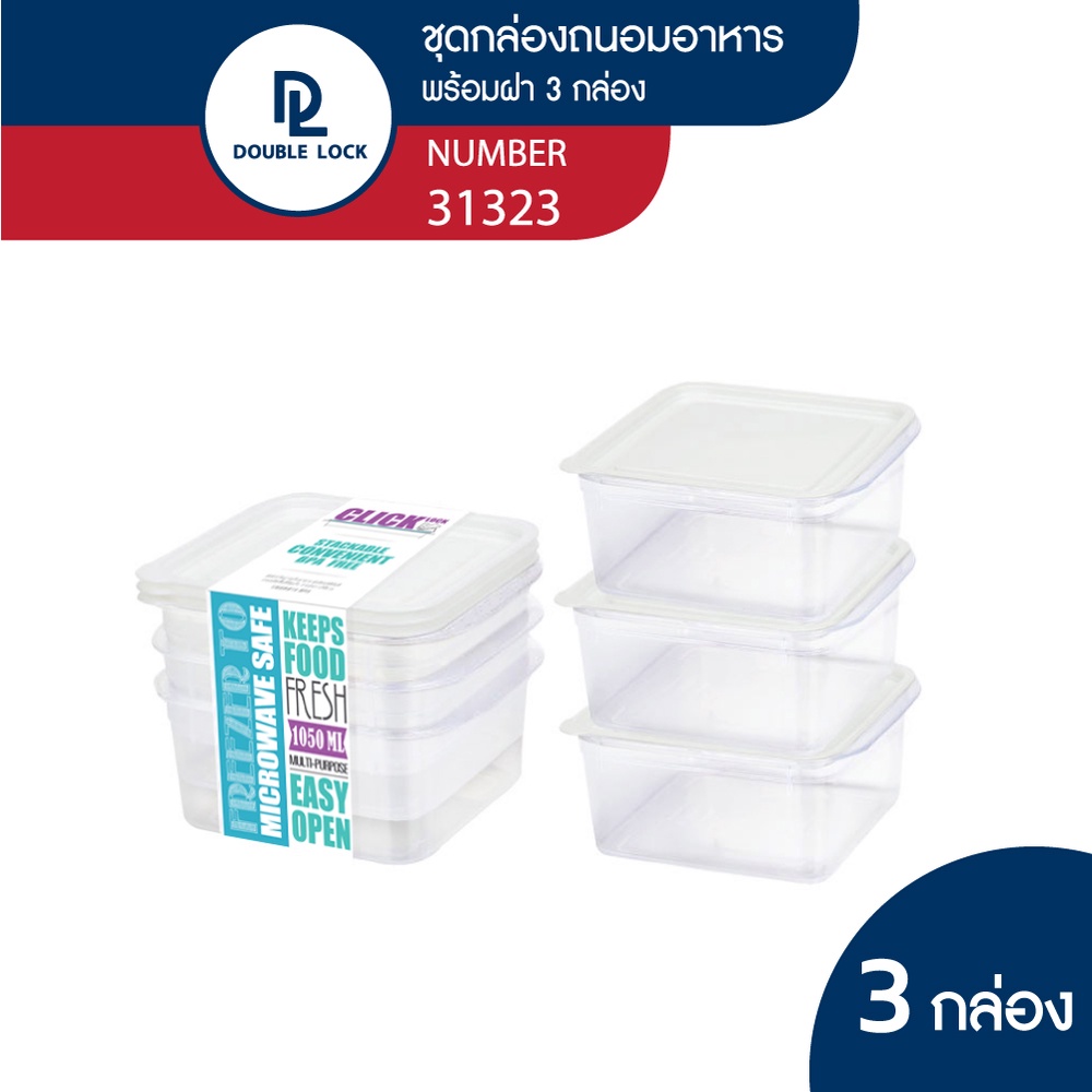 Double Lock กล่องถนอมอาหาร เข้าไมโครเวฟได้ 6 ชิ้นรวมฝา (3 กล่อง) รุ่น 31323 ความจุ 1100 ml.