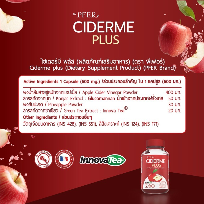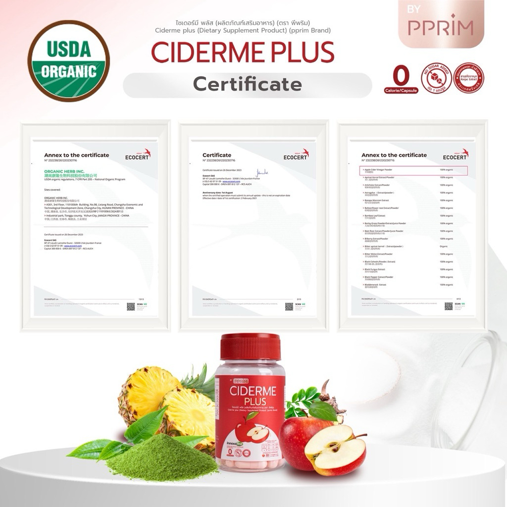 [ ร้านบริษัท PPRIM ] CIDERME PLUS สูตรใหม่ แอปเปิ้ล ไซเดอร์ แบบเม็ด apple cider vinegar แอปเปิ้ลไซเดอร์