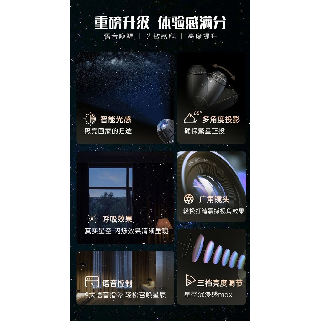 แสงท้องฟ้าที่เต็มไปด้วยดวงดาวรูปแบบเสียงอัจฉริยะโคมไฟโปรเจคเตอร์ท้องฟ้าที่เต็มไปด้วยดวงดาวโคมไฟบรรยากาศห้องนอนของขวัญวัน