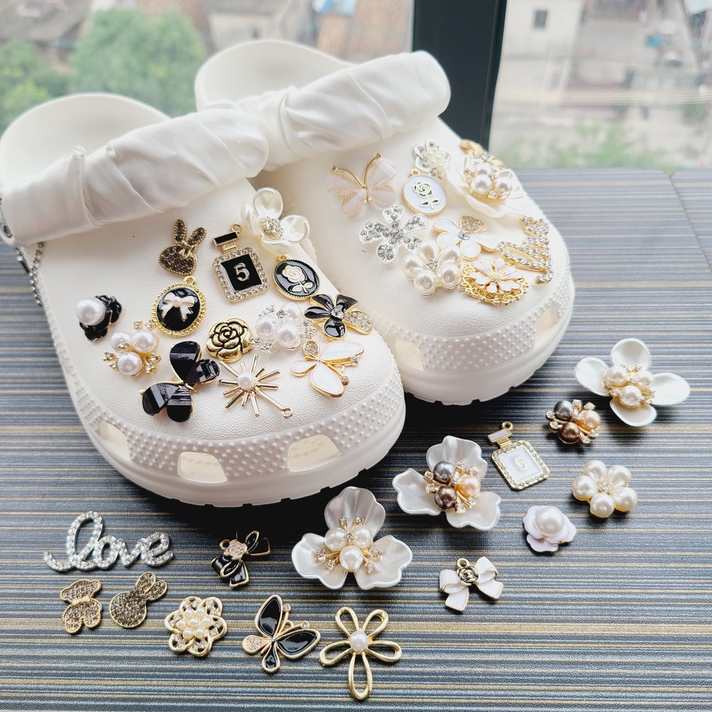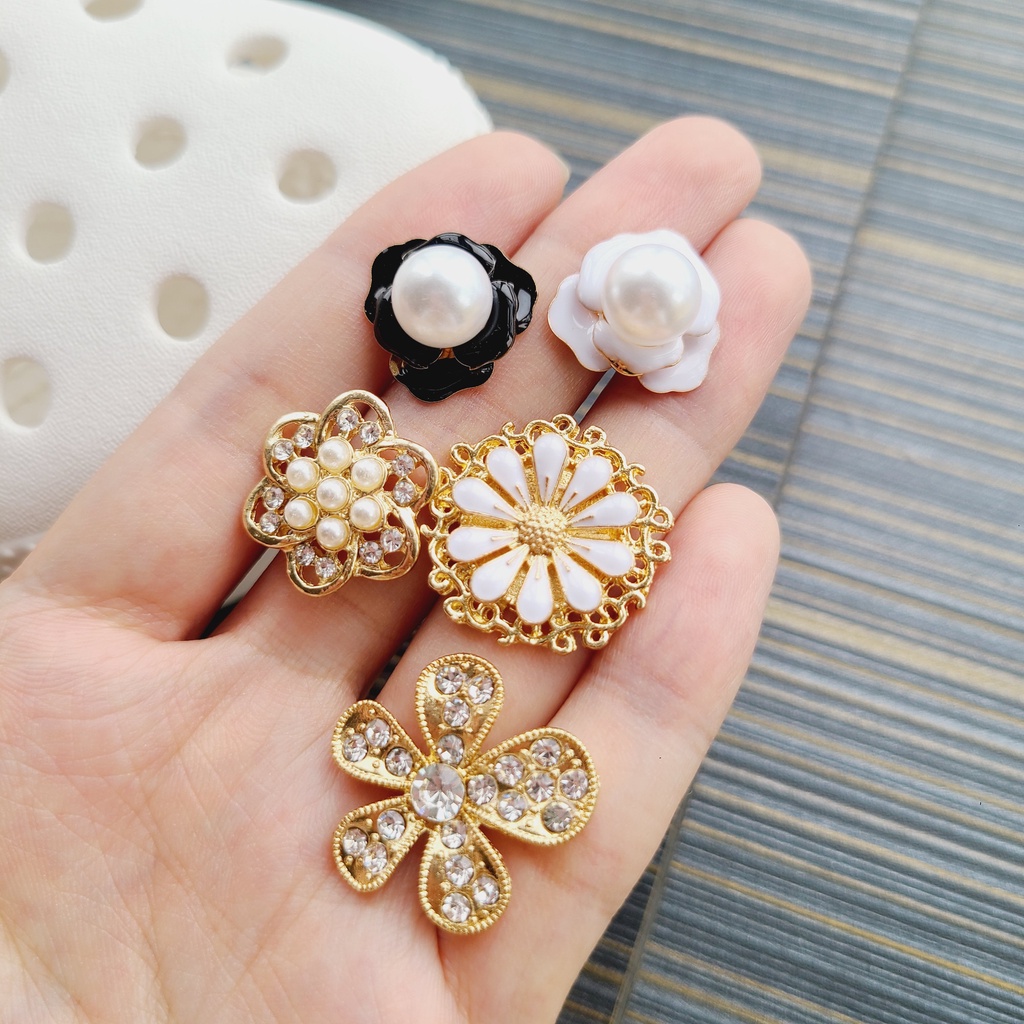 1 ชิ้นหัวเข็มขัดรองเท้า DIY Pins INS เครื่องประดับรองเท้าเครื่องประดับมุกโลหะ