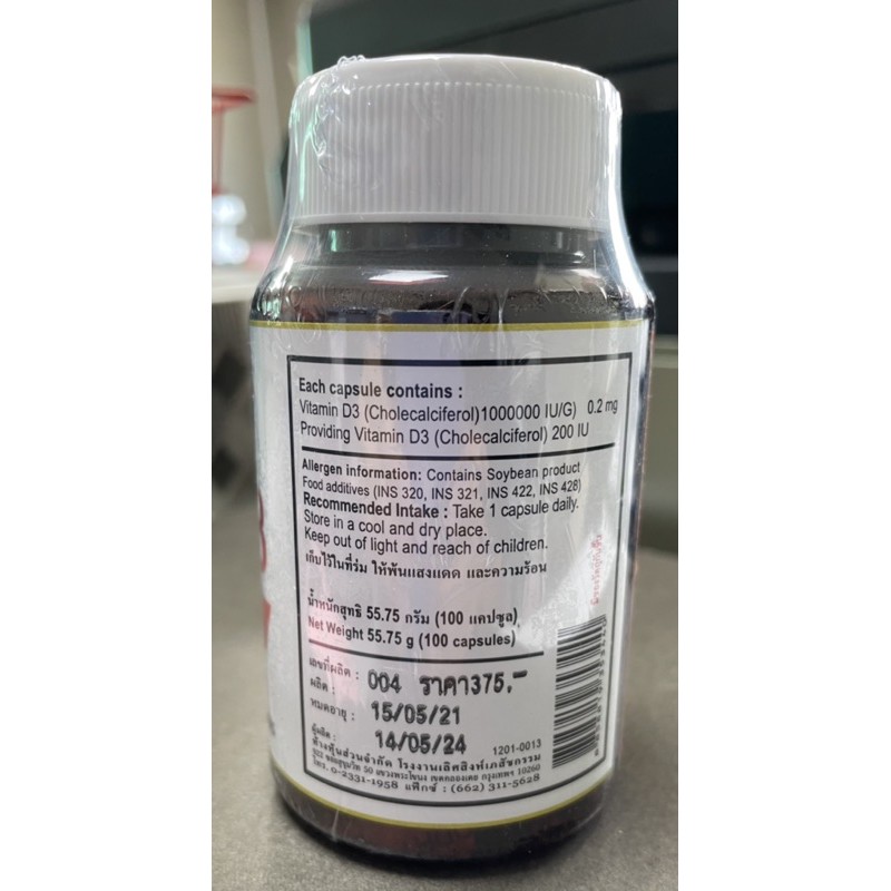 Vita D3 - Vitamin D3 200IU 100 แคปซูล