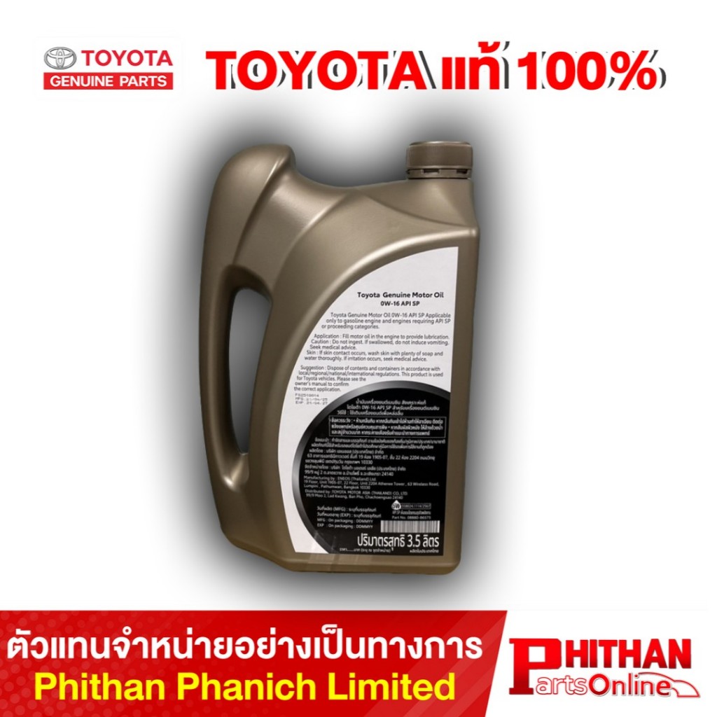 น้ำมันเครื่อง 0W-16 SP/G TOYOTA GENUINE MOTOR OIL 0W-16 SP, 3.5L 08880-86575 CHM