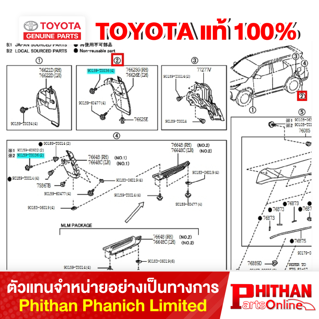 สกรู โตโยต้า SCREW TOYOTA 90159-T0036 76-52