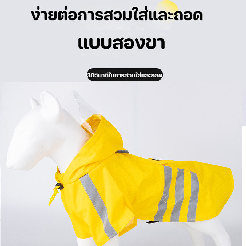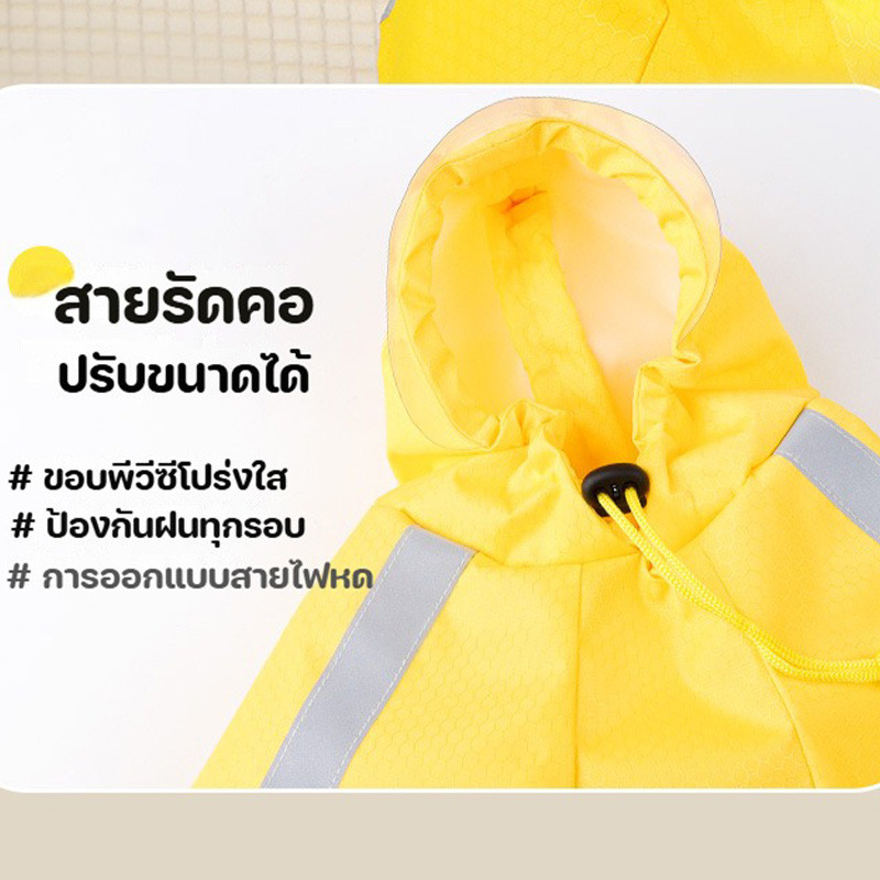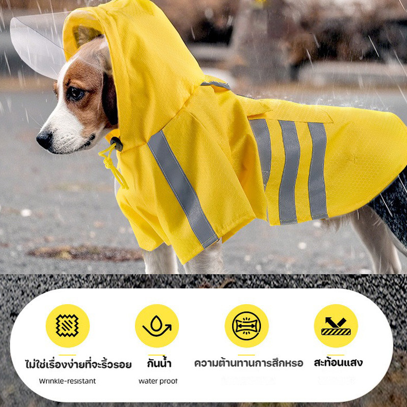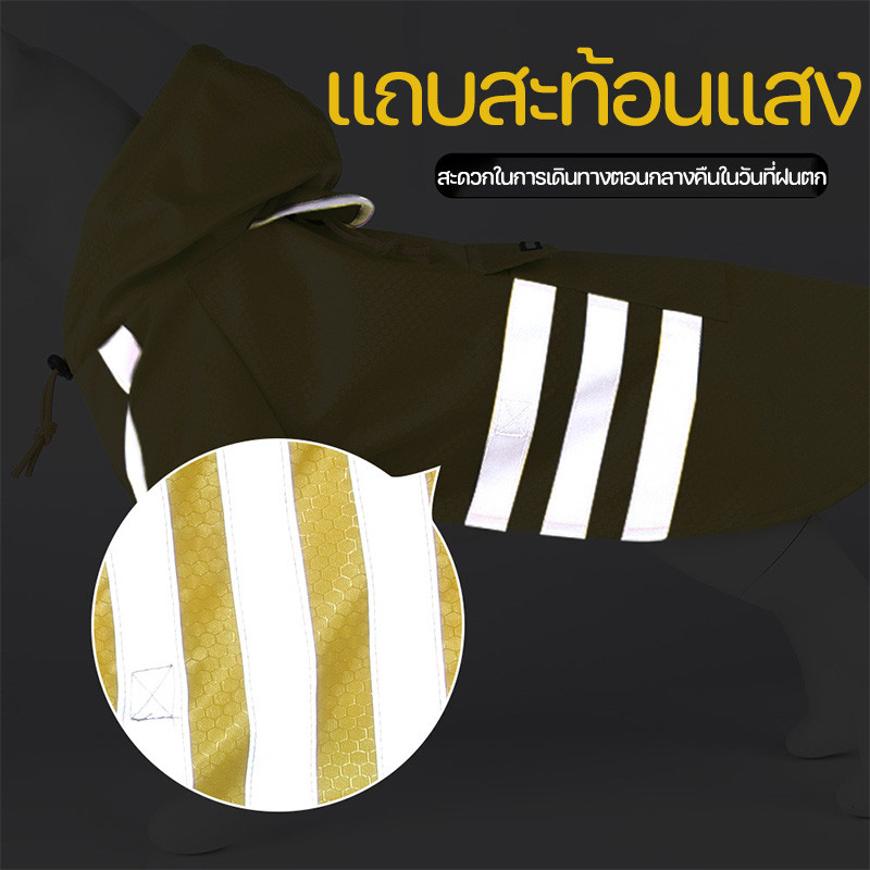CODเสื้อกันฝนสุนัข เสื้อกันฝนสัตว์เลี้ยง ผ้ากันน้ำ แบบผ้าคลุมมีฮู้ด พร้แถบสะท้อนแสง เสื้อกันฝนหมาแมว