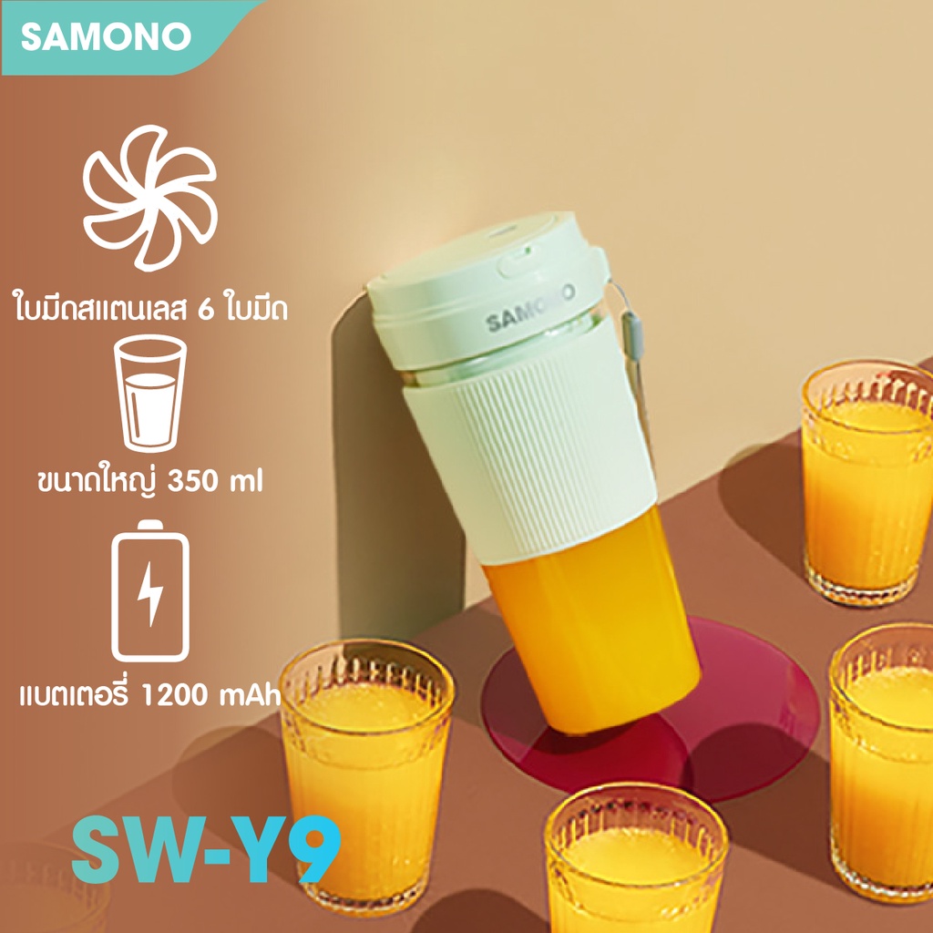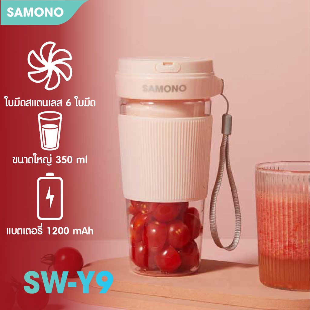 [ประกันศูนย์1 ปี] SAMONO เครื่องปั่นน้ำผลไม้ ปั่นน้ำแข็งได้ เครื่องปั่นน้ำผลไม้พกพา ชาร์จUSB มัลติฟังก์ชั่น SW-Y9