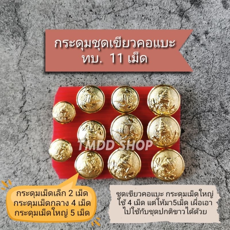กระดุมชุดปกติขาว, กระดุมชุดเขียวคอแบะ ทบ. ทหารบก ผู้ชาย