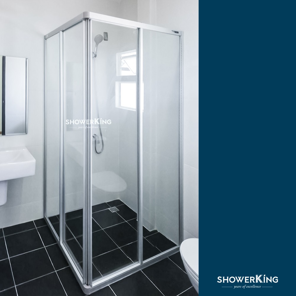 ชาวเวอร์คิงฉากกั้นอาบน้ำ DIY Shower-in-a-Box รุ่น SN02 บานเลื่อนเข้ามุม ขนาดสั่งตัด กระจกนิรภัยเทมเปอร์มอก.หนา 4มม.
