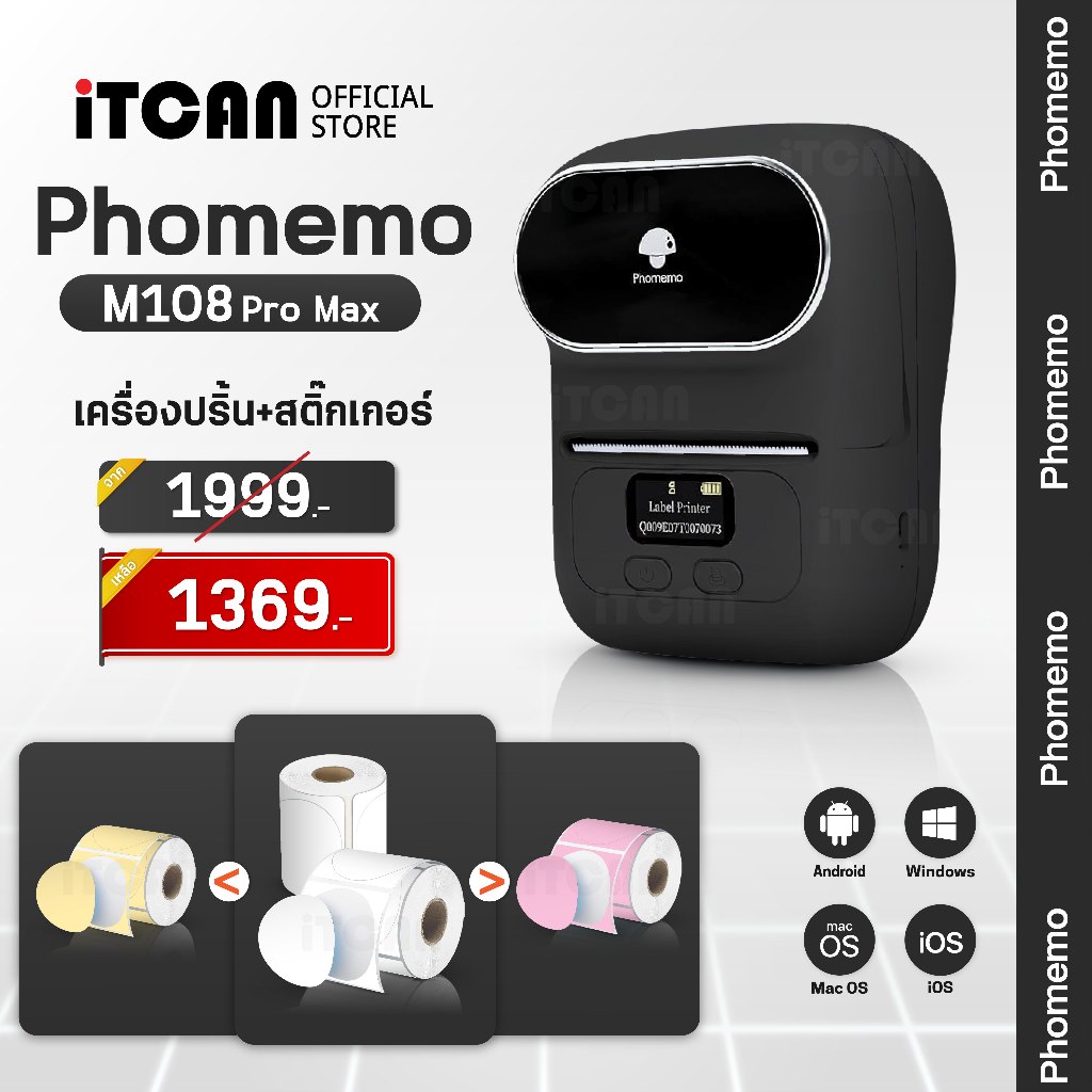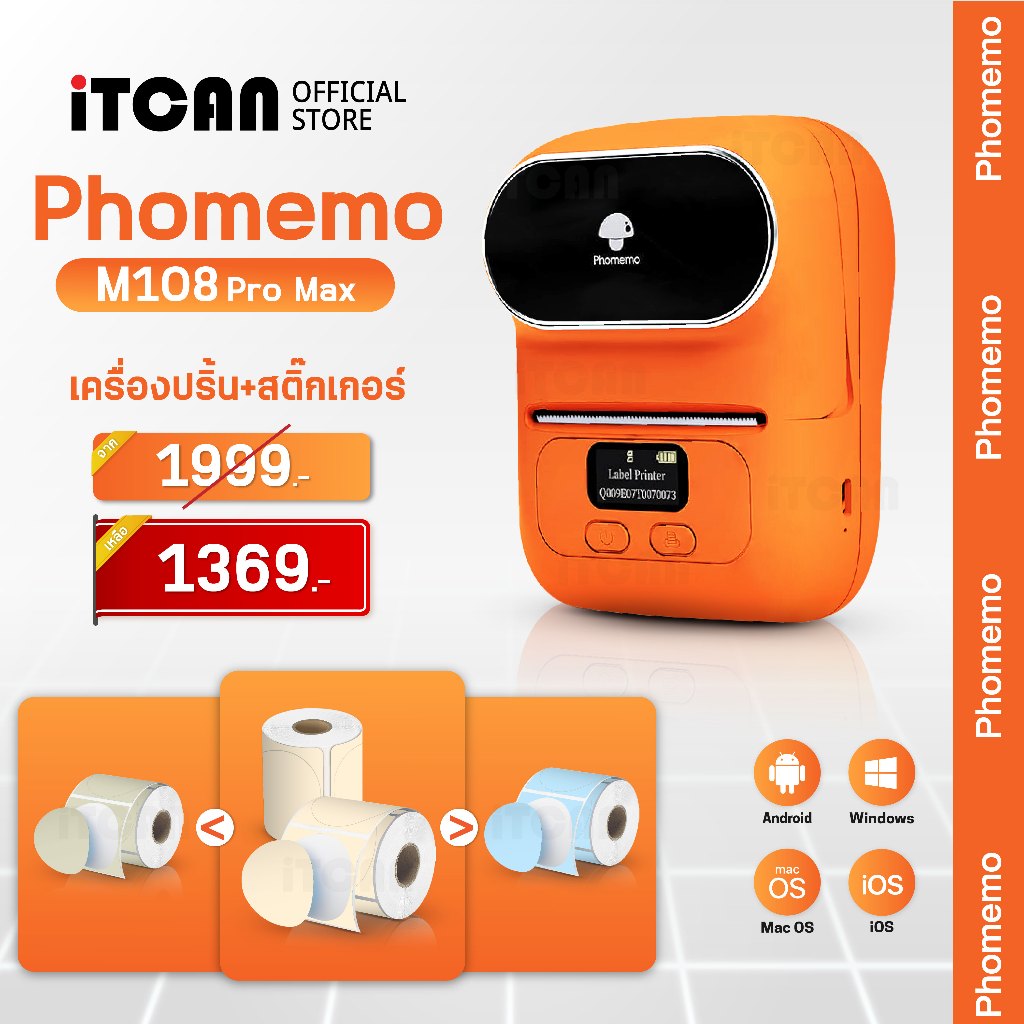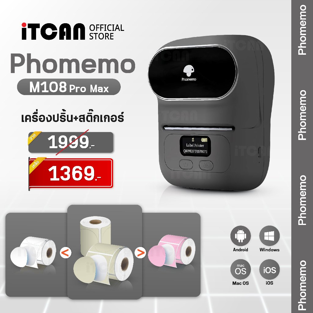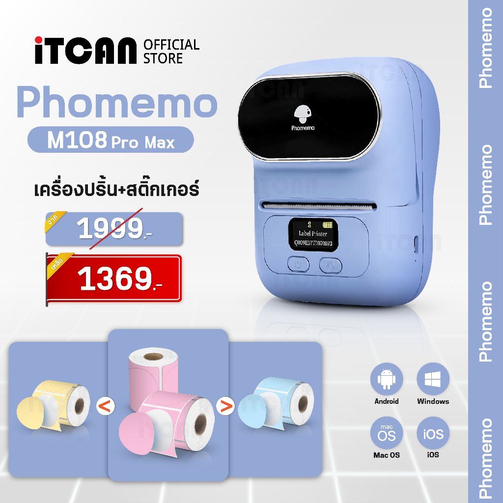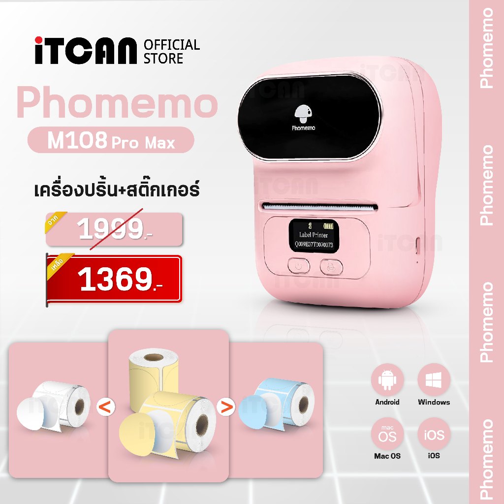 iTCAN เครื่องปริ้นพกพา Phomemo M108 Mini Printer ปริ้นสติกเกอร์ เครื่องปริ้นไม่ใช้หมึก Lable Printer