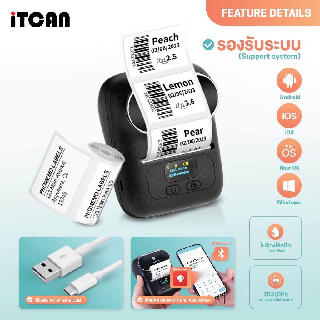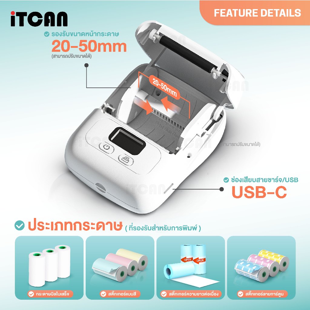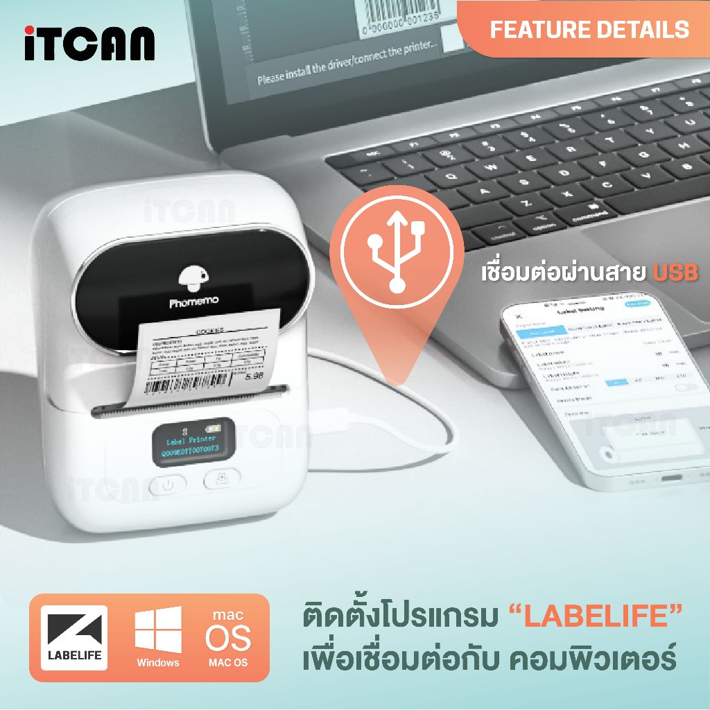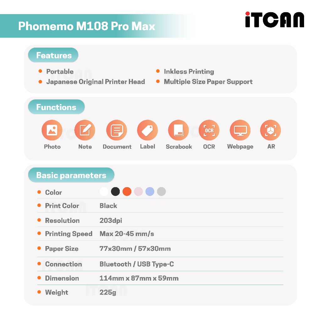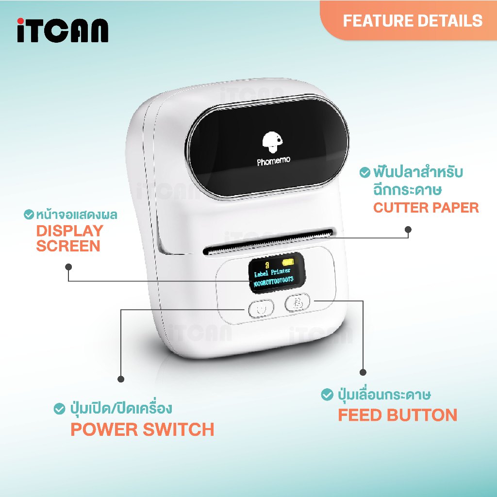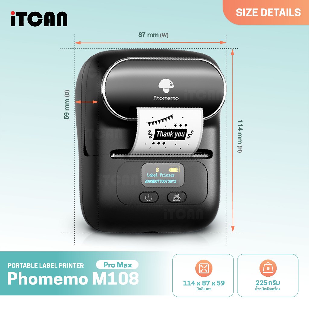iTCAN เครื่องปริ้นพกพา Phomemo M108 Mini Printer ปริ้นสติกเกอร์ เครื่องปริ้นไม่ใช้หมึก Lable Printer