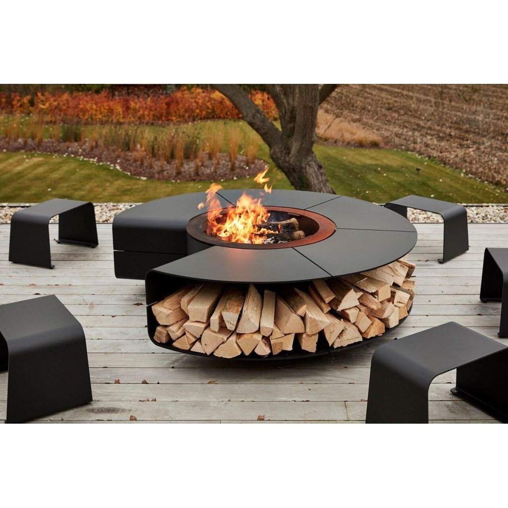 โต๊ะบาร์บีคิวในสวนพร้อมเตาไฟกลางแจ้ง เฟอร์นิเจอร์บ้าน ขาตั้งบาร์บีคิว เตาไฟศิลปะเหล็ก