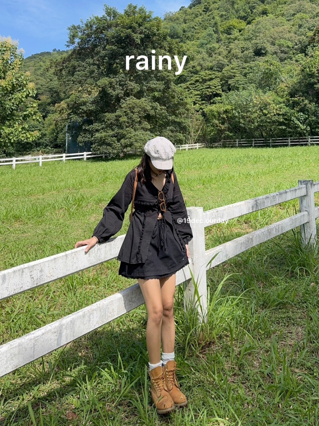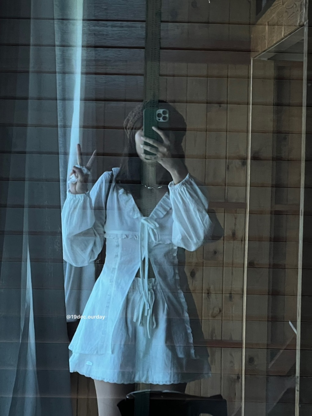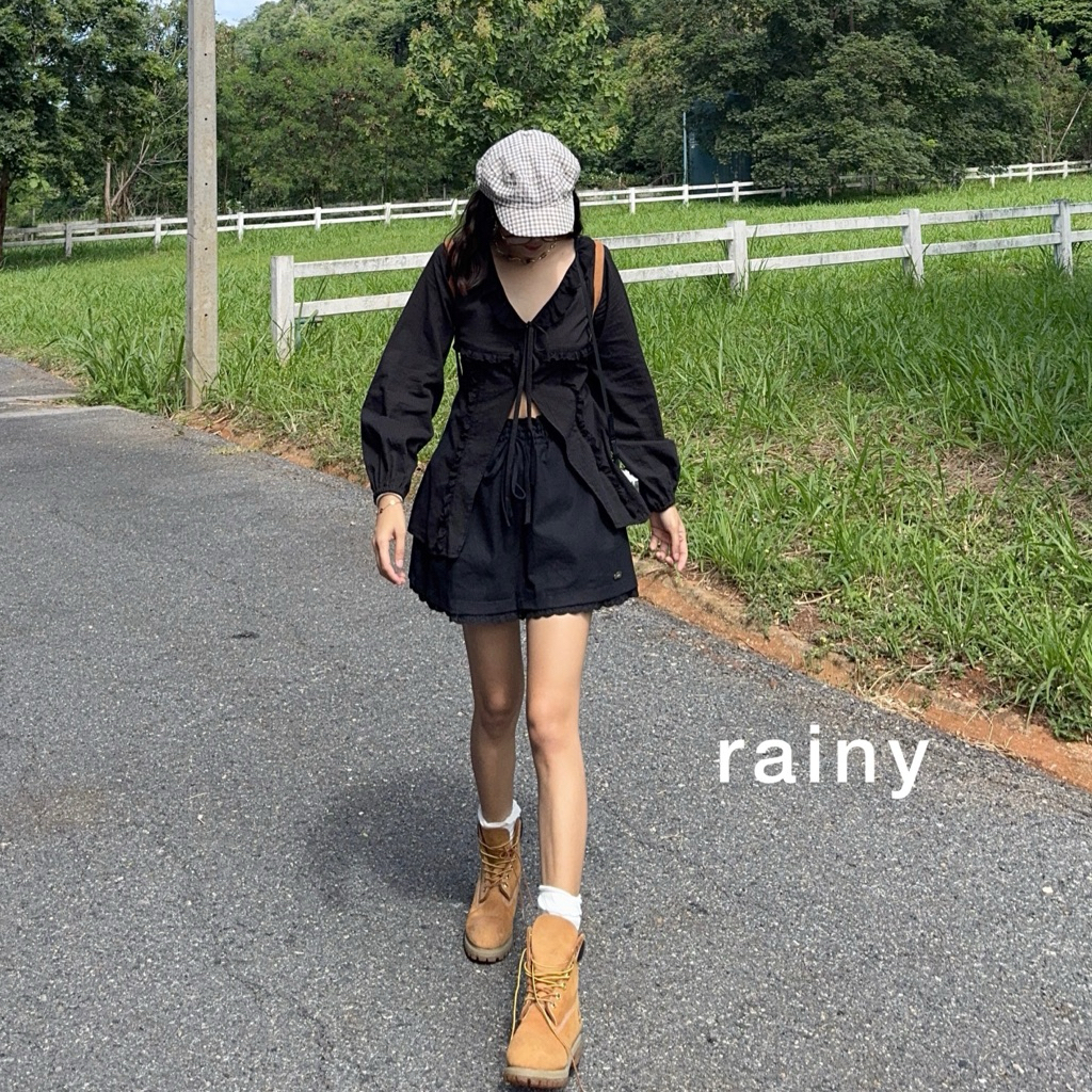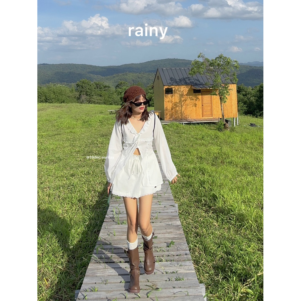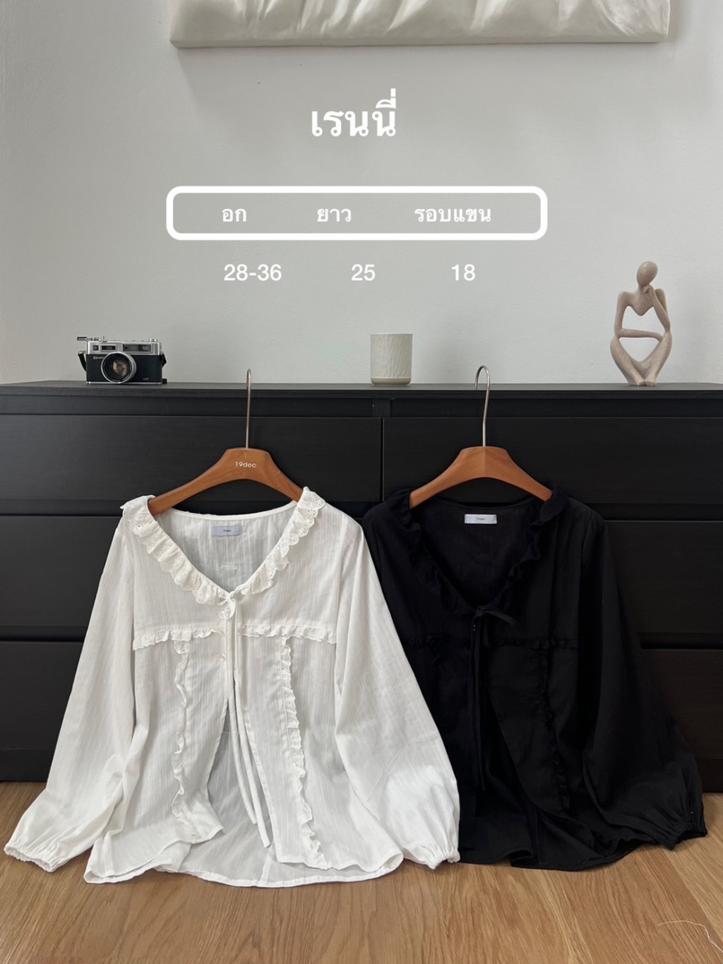 (เรนนี่) เฉพาะเสื้อ เสื้อแขนยาวแหวกหน้า ดีเทลแต่งลูกไม้