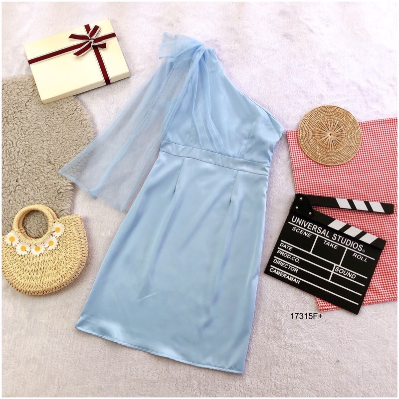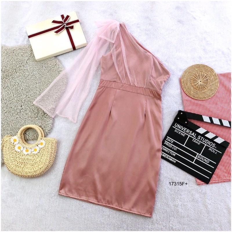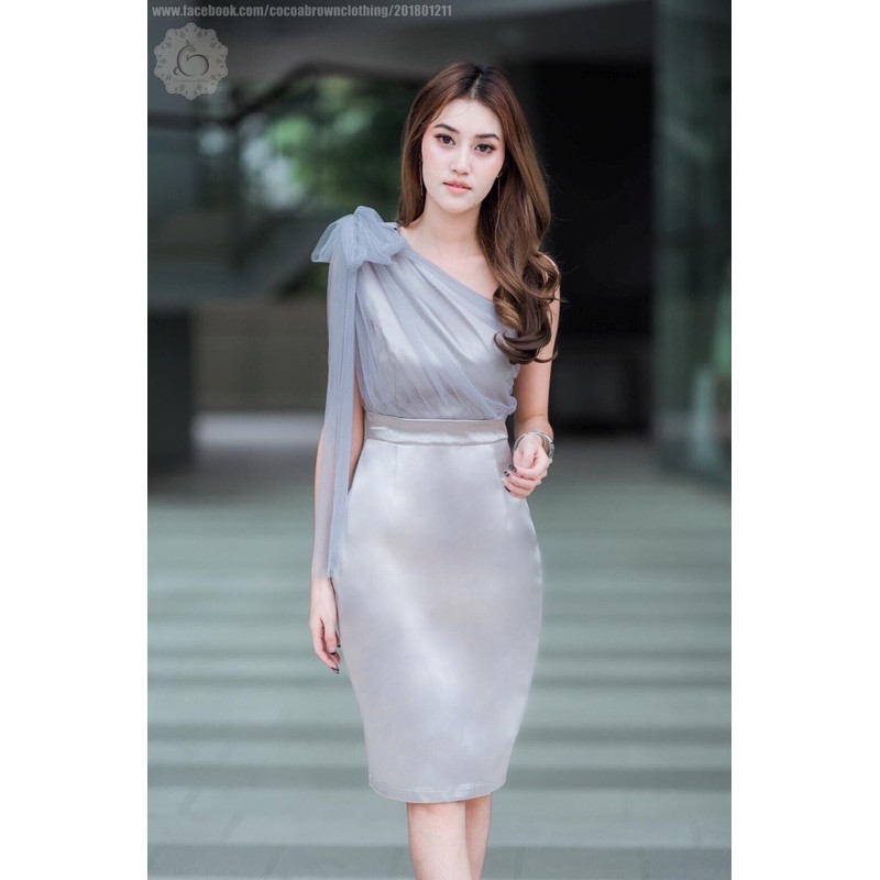 #16,#19 ชุดออกงาน เดรสสั้นแต่งผ้าตาข่าย โบว์ไหล่ ชุดราตรี เดรสสาวอวบ สาวอวบ มีไซส์เล็ก ไซส์ใหญ่ #ตะข่าย