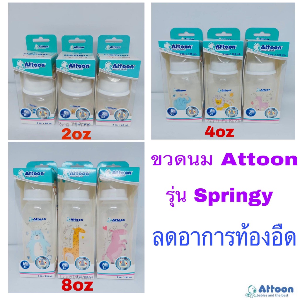 Attoon ขวดนม 2oz/4oz/8oz Hygienic รุ่น Springy ลดท้องอืด