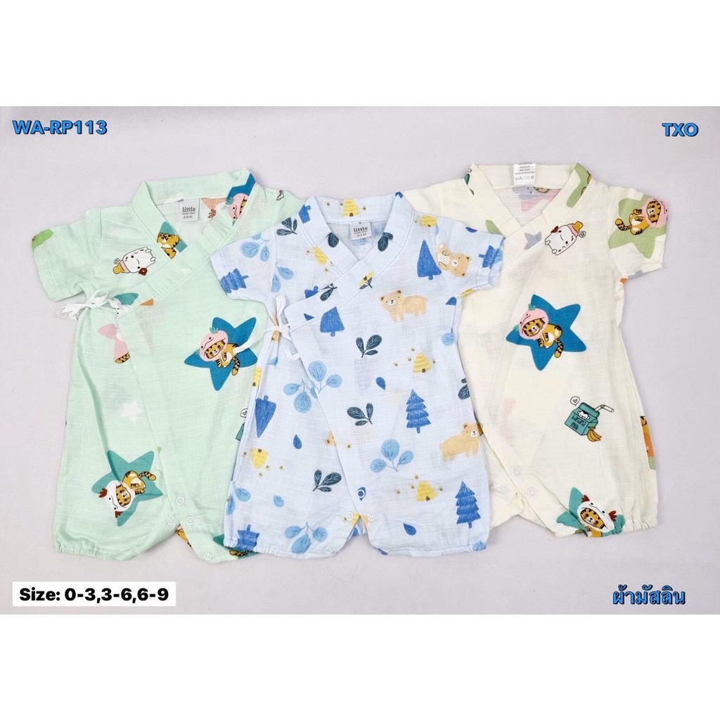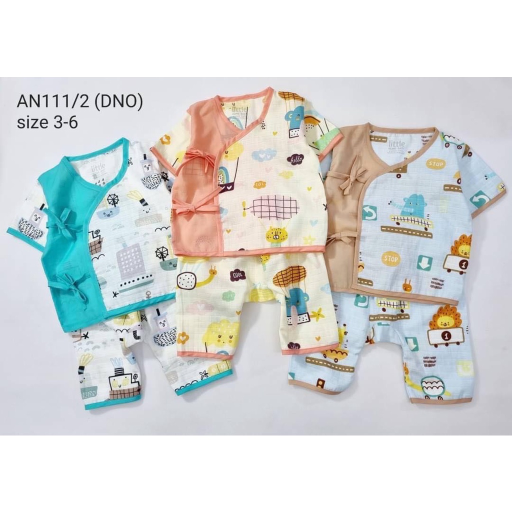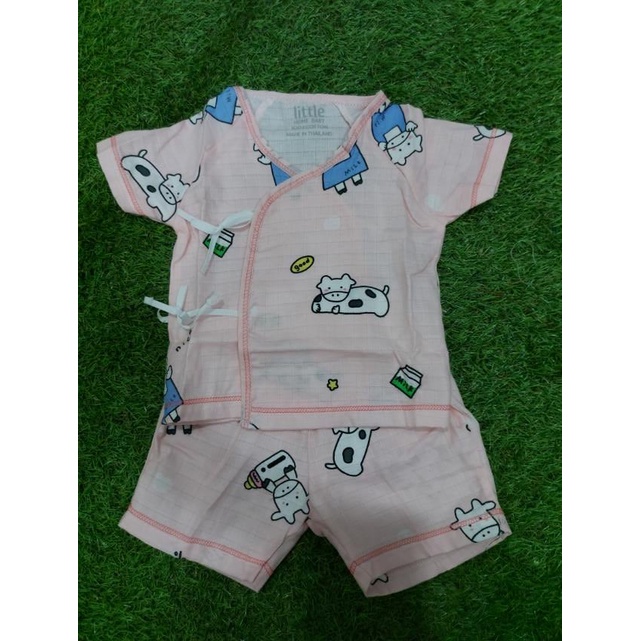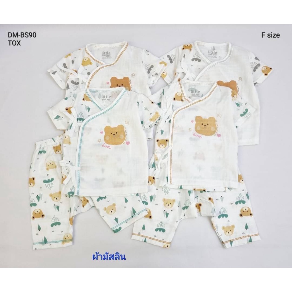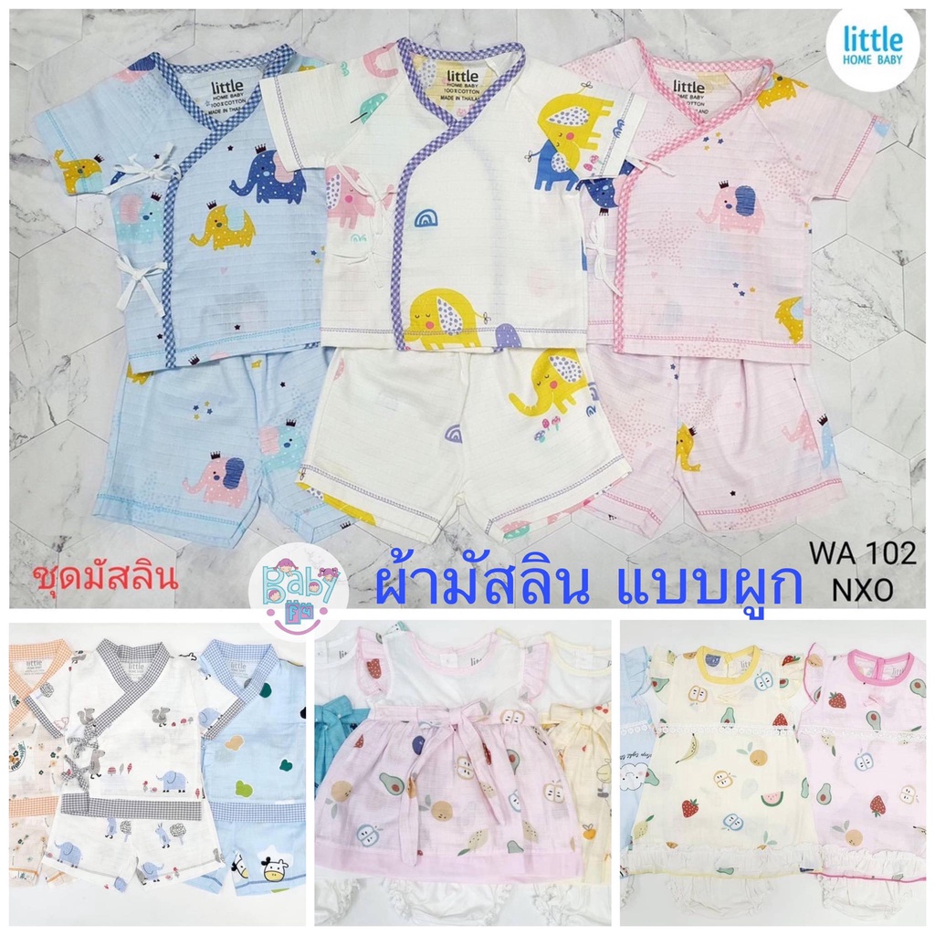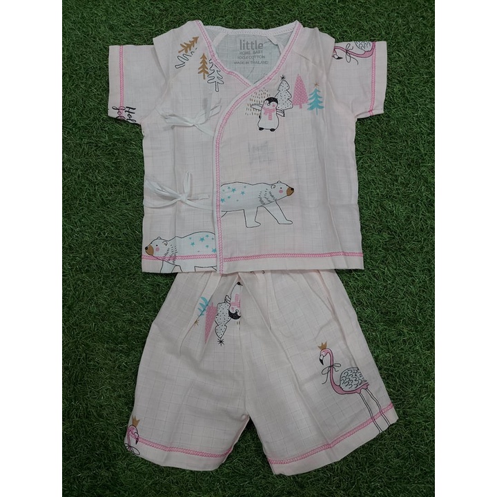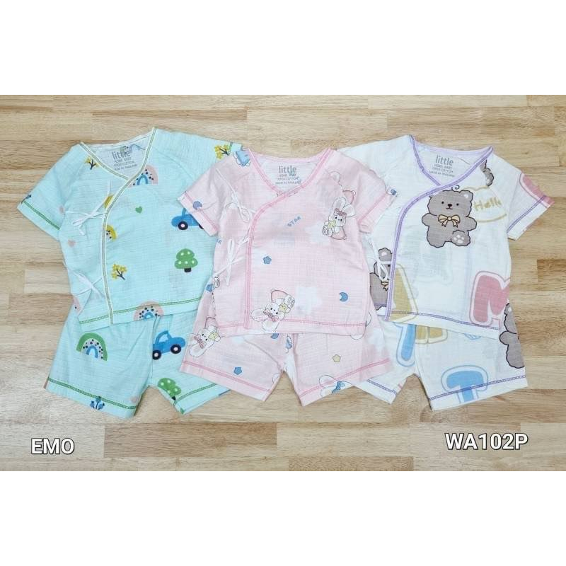 Little Home Baby ชุดเด็กแรกเกิด เสื้อผ้ามัสลินผูกหน้า+กางเกง (สั้น)