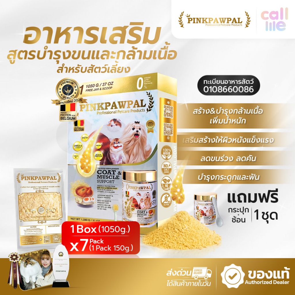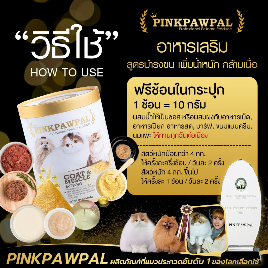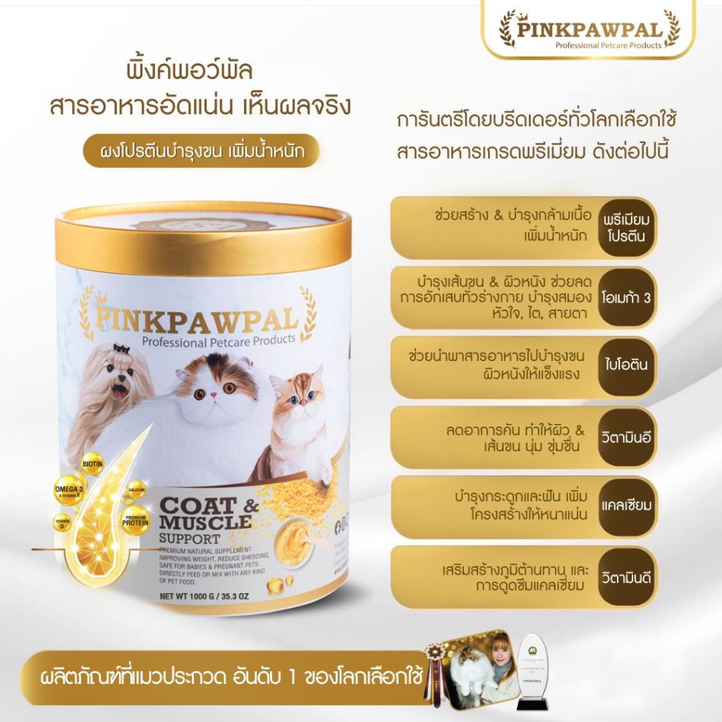 [Sizeจัมโบ้ แพคเกจใหม่2026] Pinkpawpal อาหารเสริมสัตว์เลี้ยง สูตรเพิ่มน ้ำหนัก บำรุงขนและกล้ามเนื้อ 1,050g.