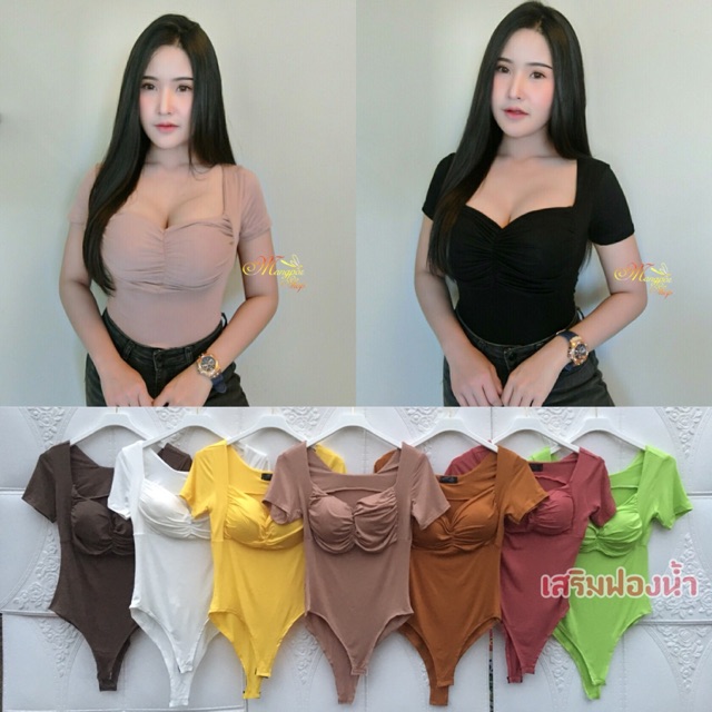💕ShopBypuy💕บอดี้สูทหย่นหน้าแขนสั้นเสริมฟองน้ำ 🔥ดำเข้าเพิ่มจ้า📌