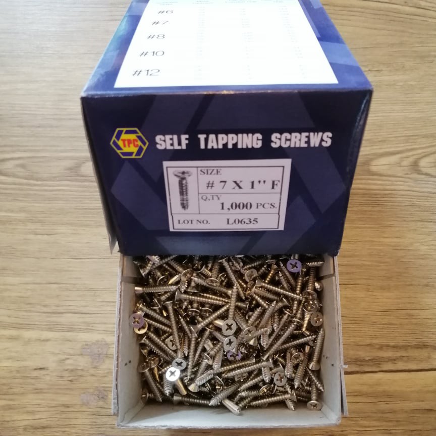 สกรูเกลียวปล่อย1นิ้ว เบอร์7 หัวแบน F 1*7 ยกกล่อง1000ตัว อย่างดีชุบโครเมียม