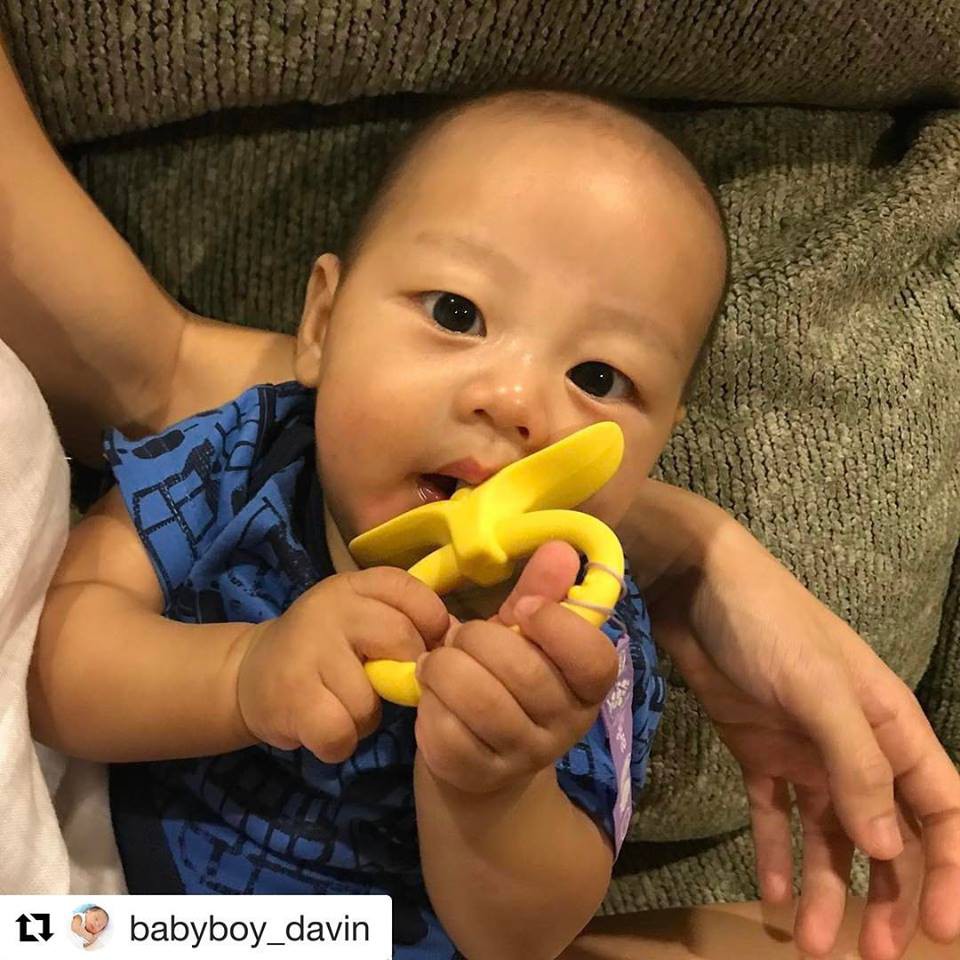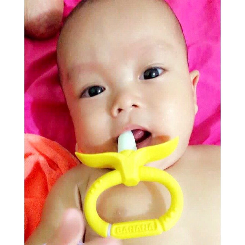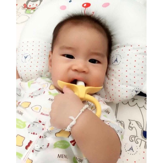 ยางกัดเด็ก ยางกัดอังจูกล้วยวงกลม พร้อมคลิปกันตกซิลิโคน ยางกัดเสริมพัฒนาการจากเกาหลี แท้ (มี มอก.)