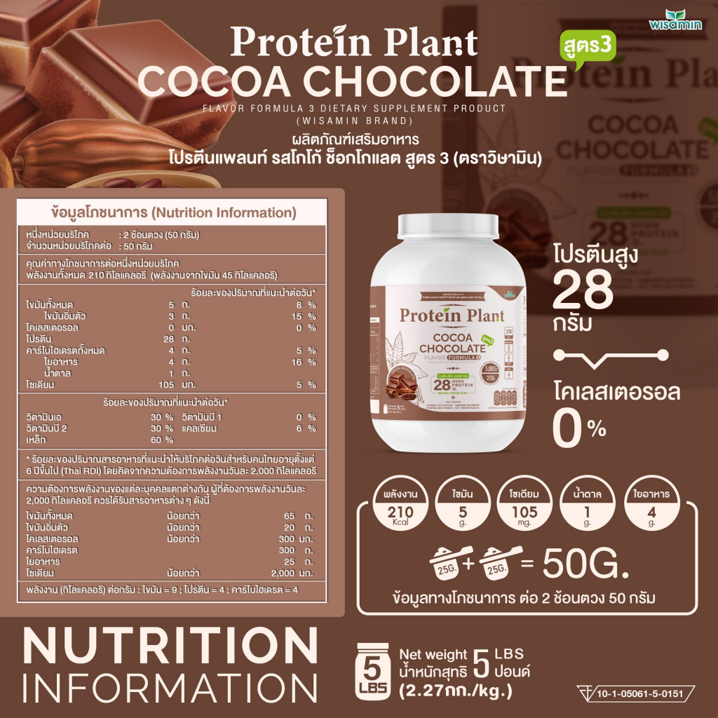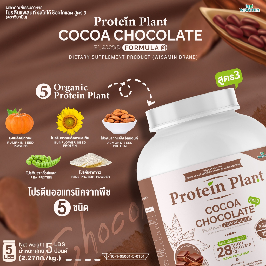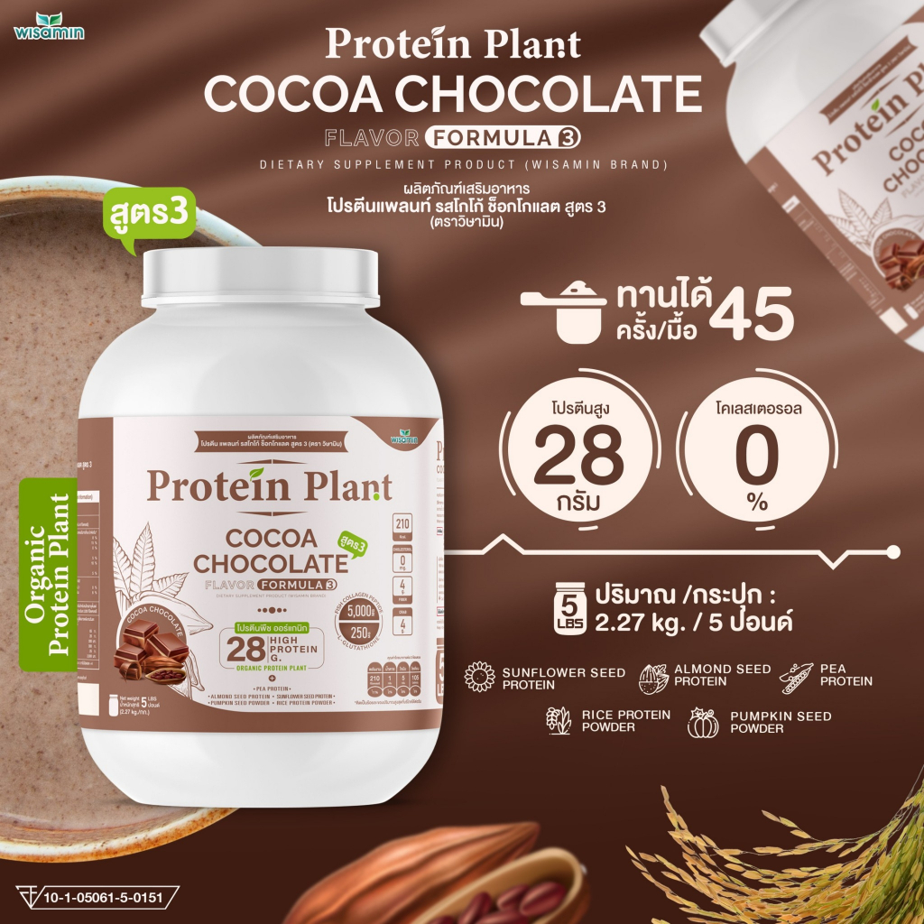 โปรตีนแพลนท์ สูตร 3 Protein Plant ( รสโกโก้ ) ปริมาณ 2.27 kg/กระปุก โปรตีนพืช ออแกรนิค คอลลาเจนเปปไทด์ แอลกลูต้าไธโอน
