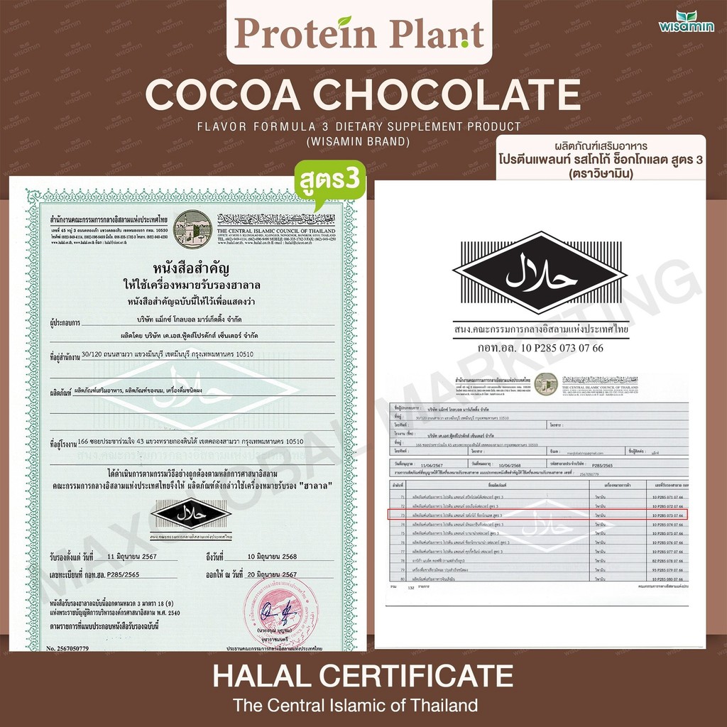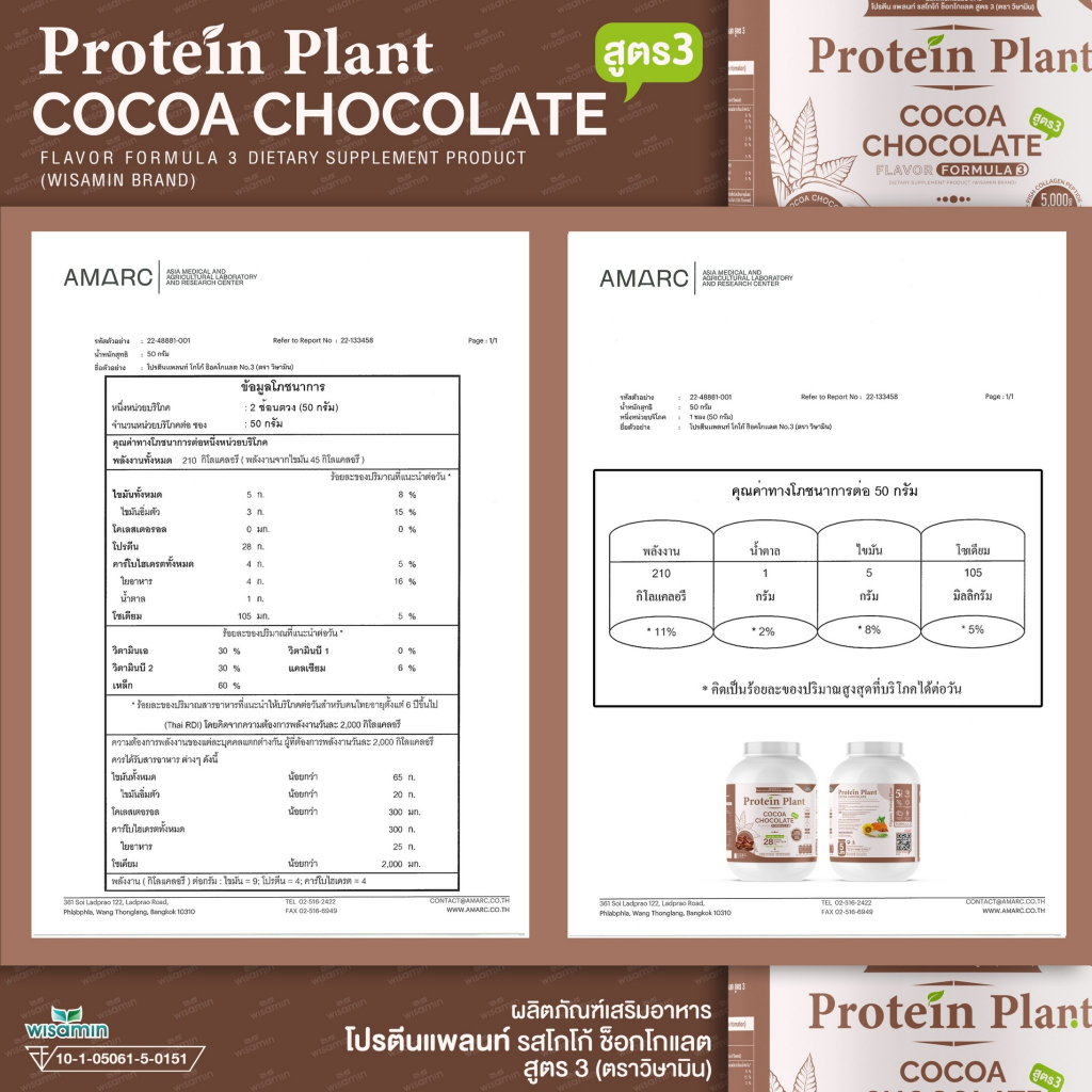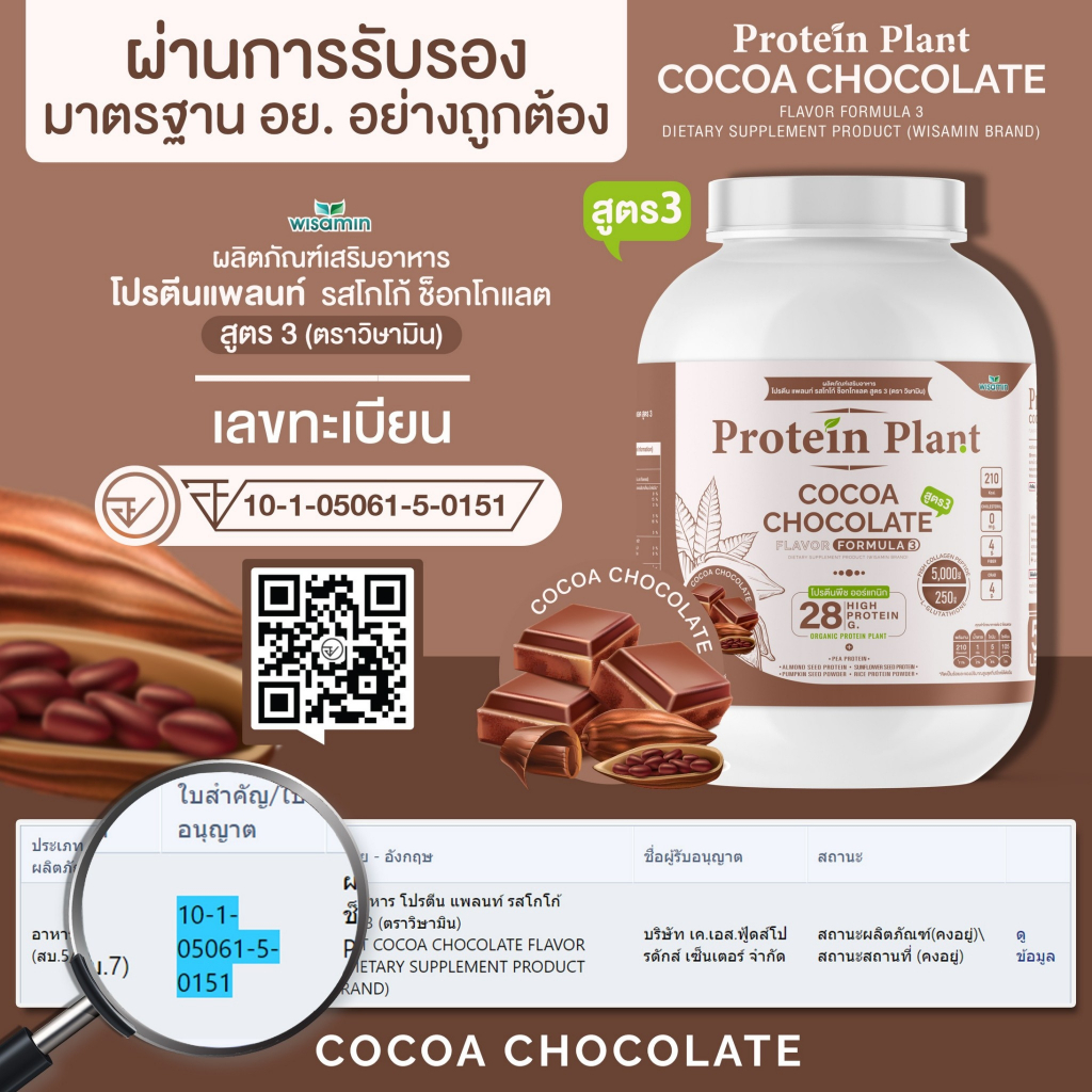 โปรตีนแพลนท์ สูตร 3 Protein Plant ( รสโกโก้ ) ปริมาณ 2.27 kg/กระปุก โปรตีนพืช ออแกรนิค คอลลาเจนเปปไทด์ แอลกลูต้าไธโอน