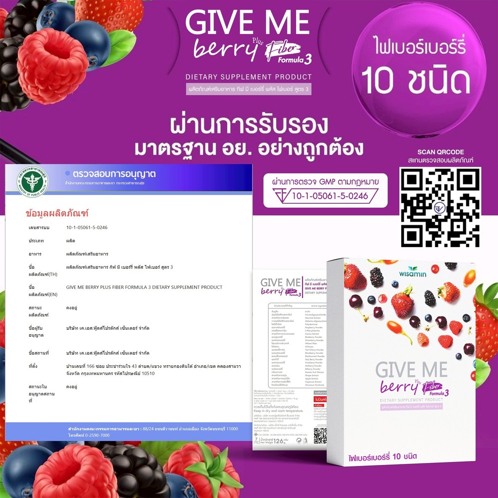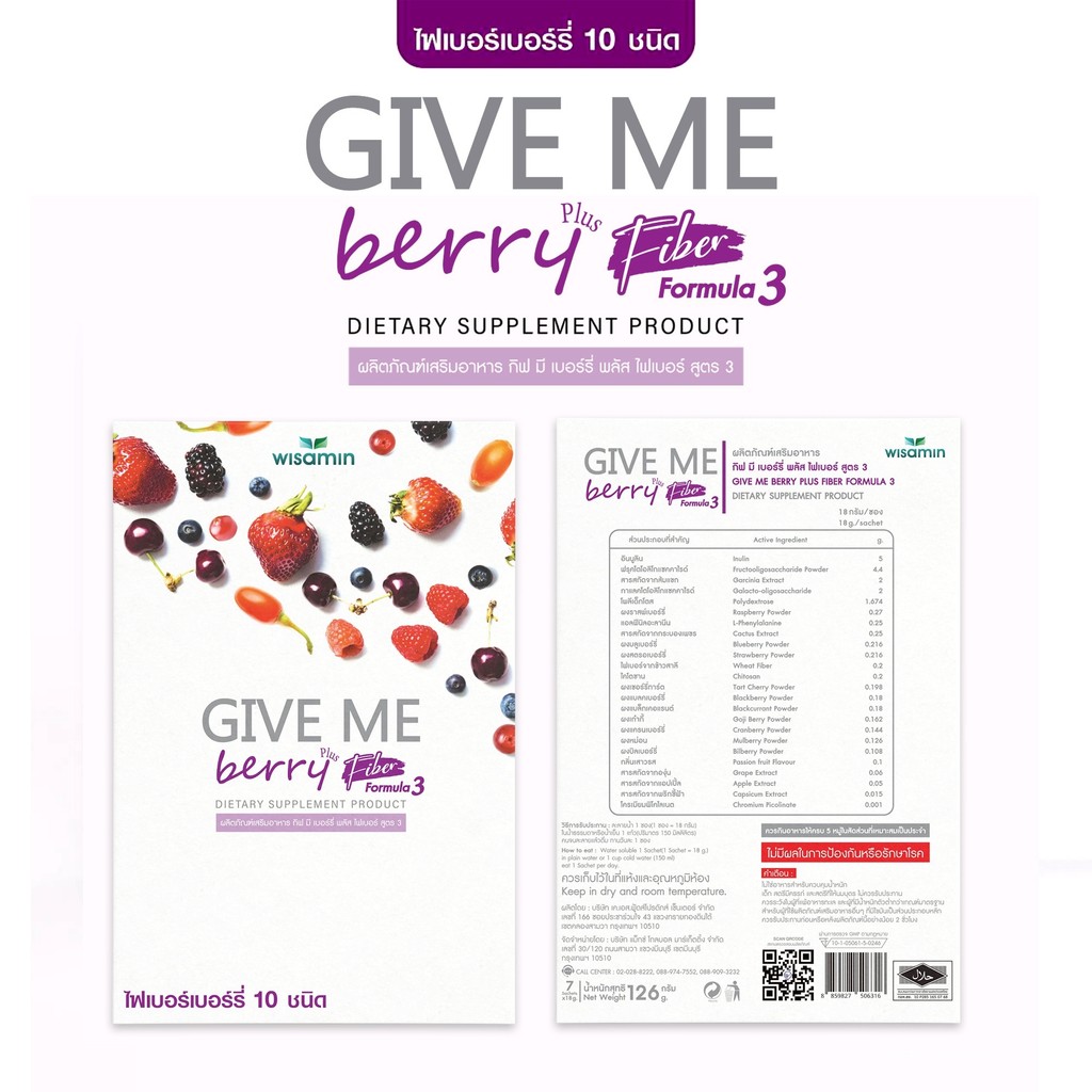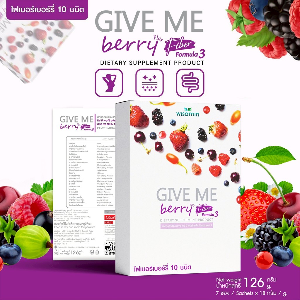 (แพคคู่ 2 กล่อง) GIVE ME BERRY PLUS FIBER สูตร 3 กีฟมี เบอร์รี่ ไฟเบอร์ พลัส (ตราวิษามิน) จำนวน 2 กล่อง รวม 14 ซอง