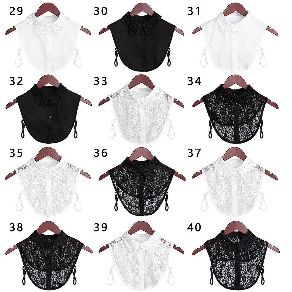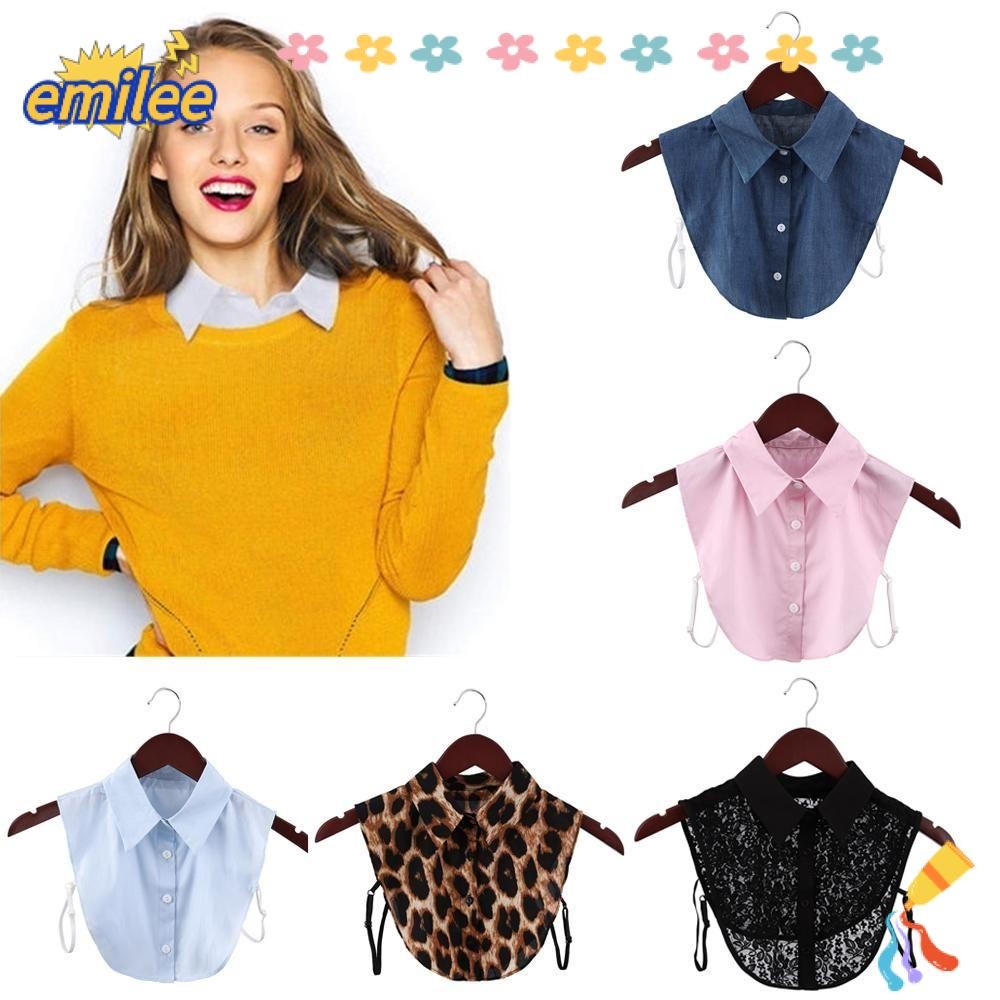 เอมิลี เสื้อปกปลอมปกวินเทจลูกไม้สีดํา/สีขาวเสือดาว เมล็ดพืช คาวบอยเสื้อแฟชั่นปกเท็จ