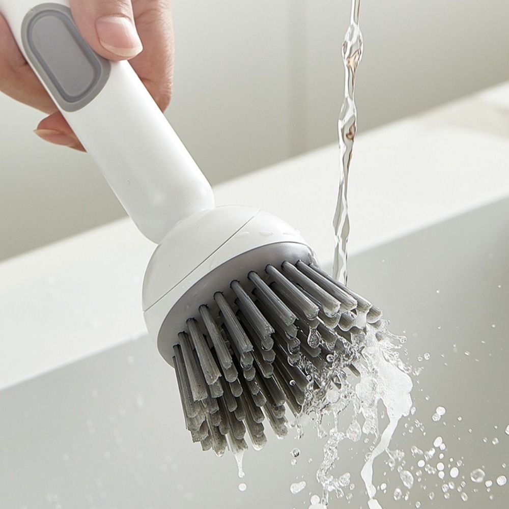 LONTIME เครื่องจ่ายสบู่ขัดพื้น, กดออกของเหลวแขวนเติมแปรงล้างของเหลว, อเนกประสงค์หมุนได้ด้ามยาวแปรงล้างจานครัวหม้อจานอ่างล้างจาน