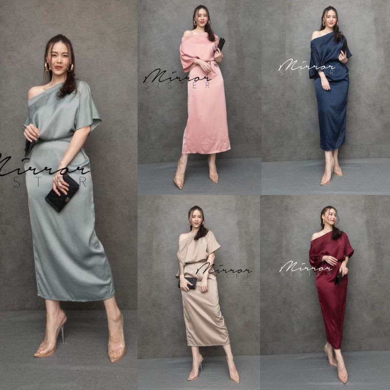 🏷️Mirrorsister #30823.1 เดรสไหล่ตก ปาดไหล่ ชุดออกงาน เดรสซาติน ชุดราตรี