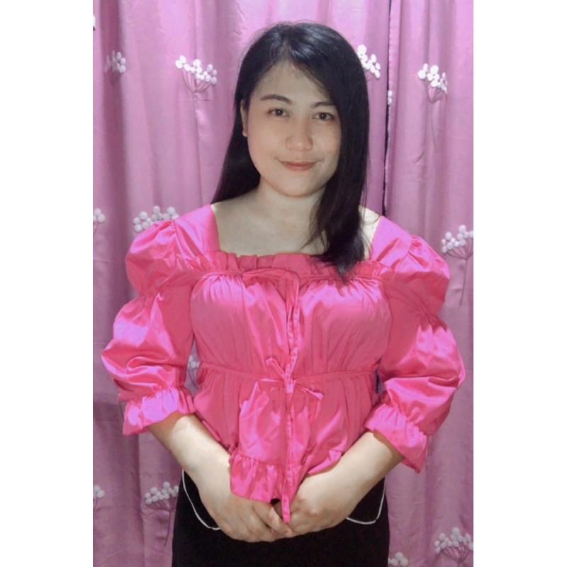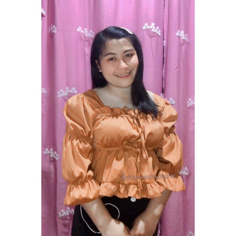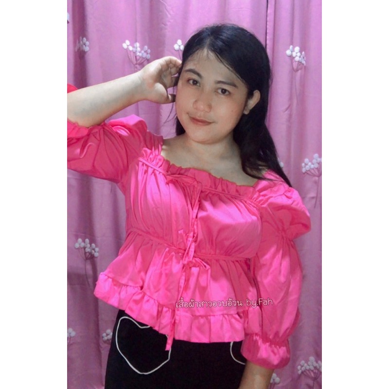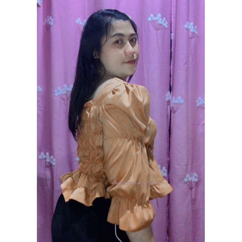 เสื้อผูกโบว์สาวอวบ สม็อคหลังทั้งตัว ยืดเยอะสุดๆ‼️