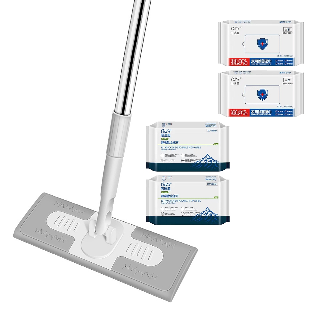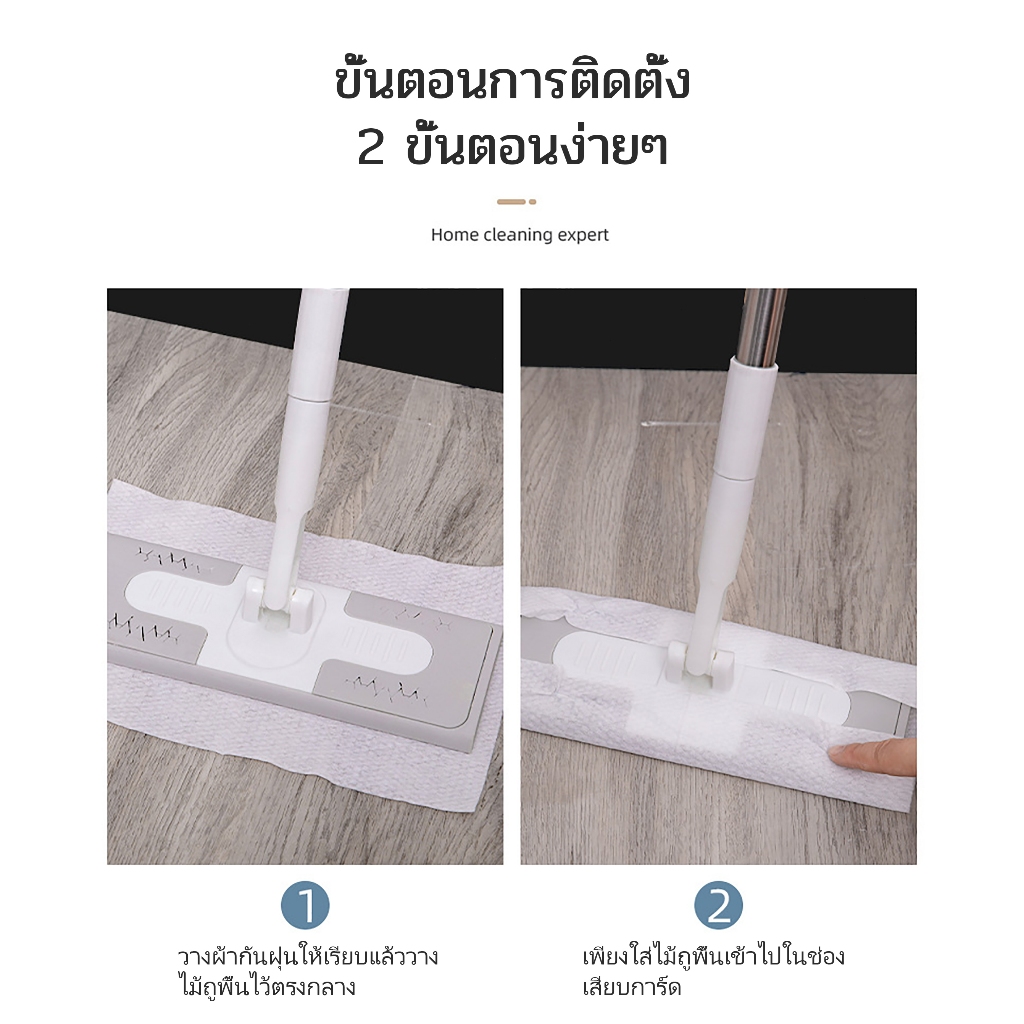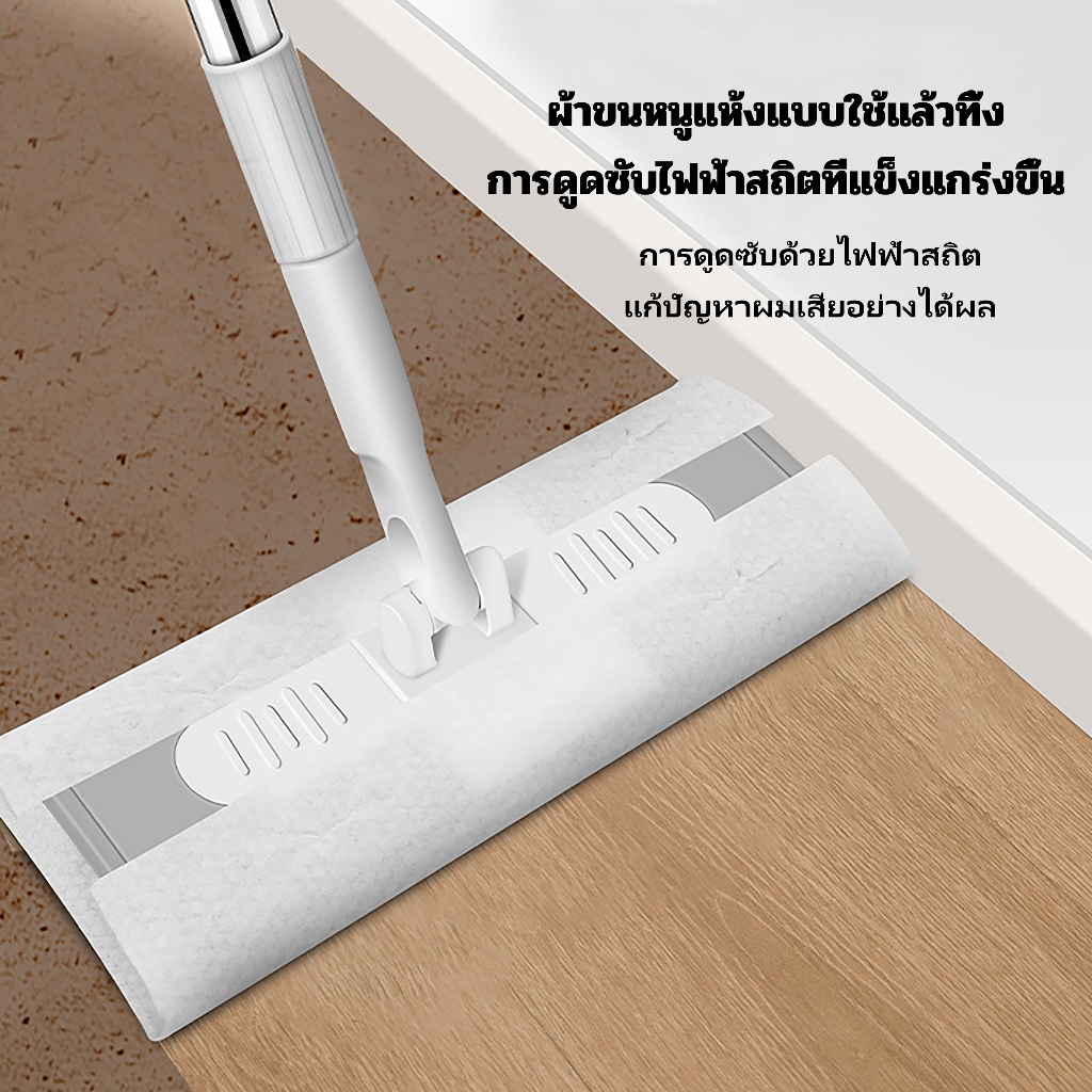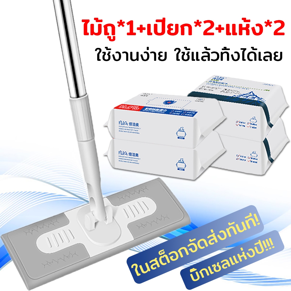 (ไม้ถู*1+เปียก*2+แห้ง*2) ไม้ถูพื้น ใช้แล้วทิ้ง กระดาษเปียก กระดาษแห้ง ผ้ารีฟิลถูพื้น ปรับได้ lazy mop ไม้ม็อบดันฝุ่น
