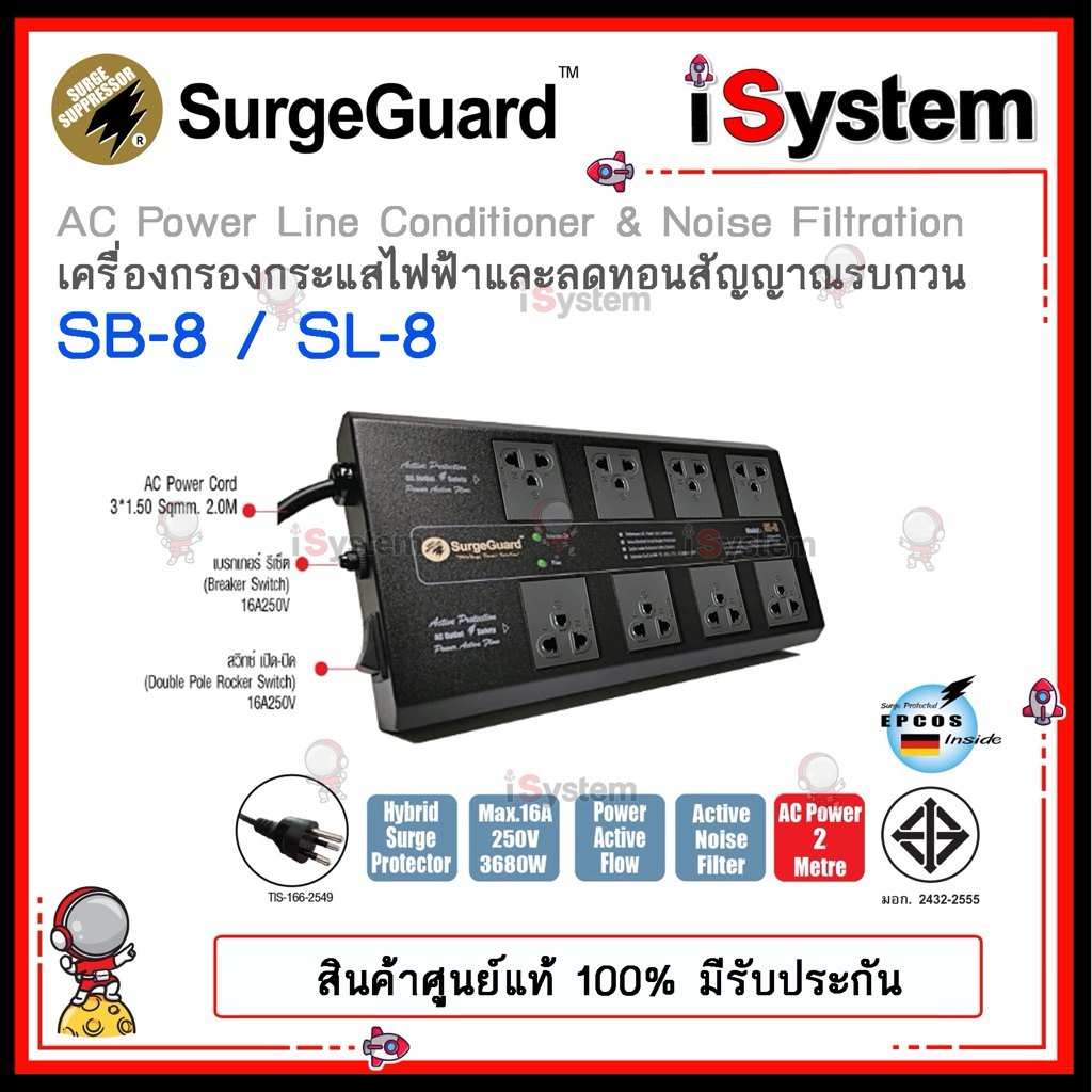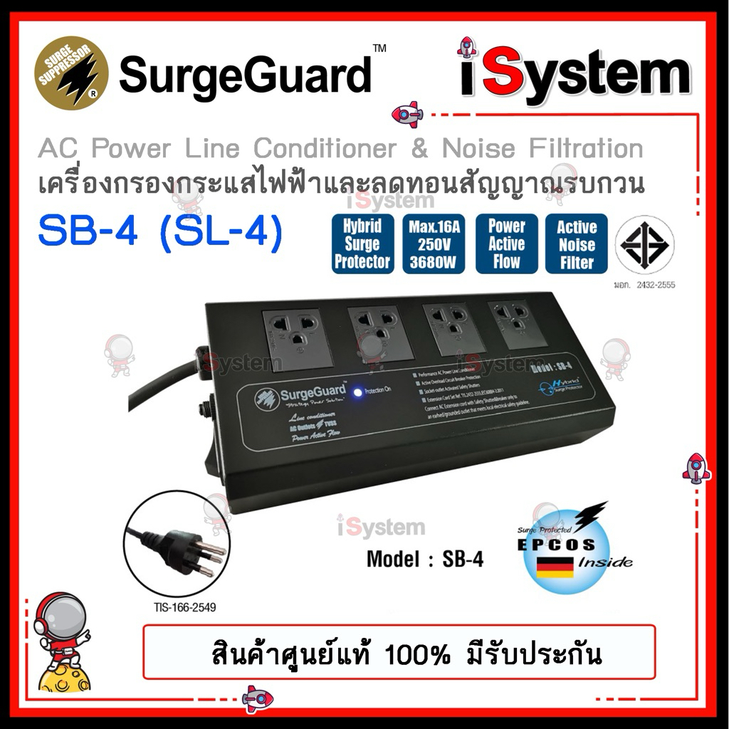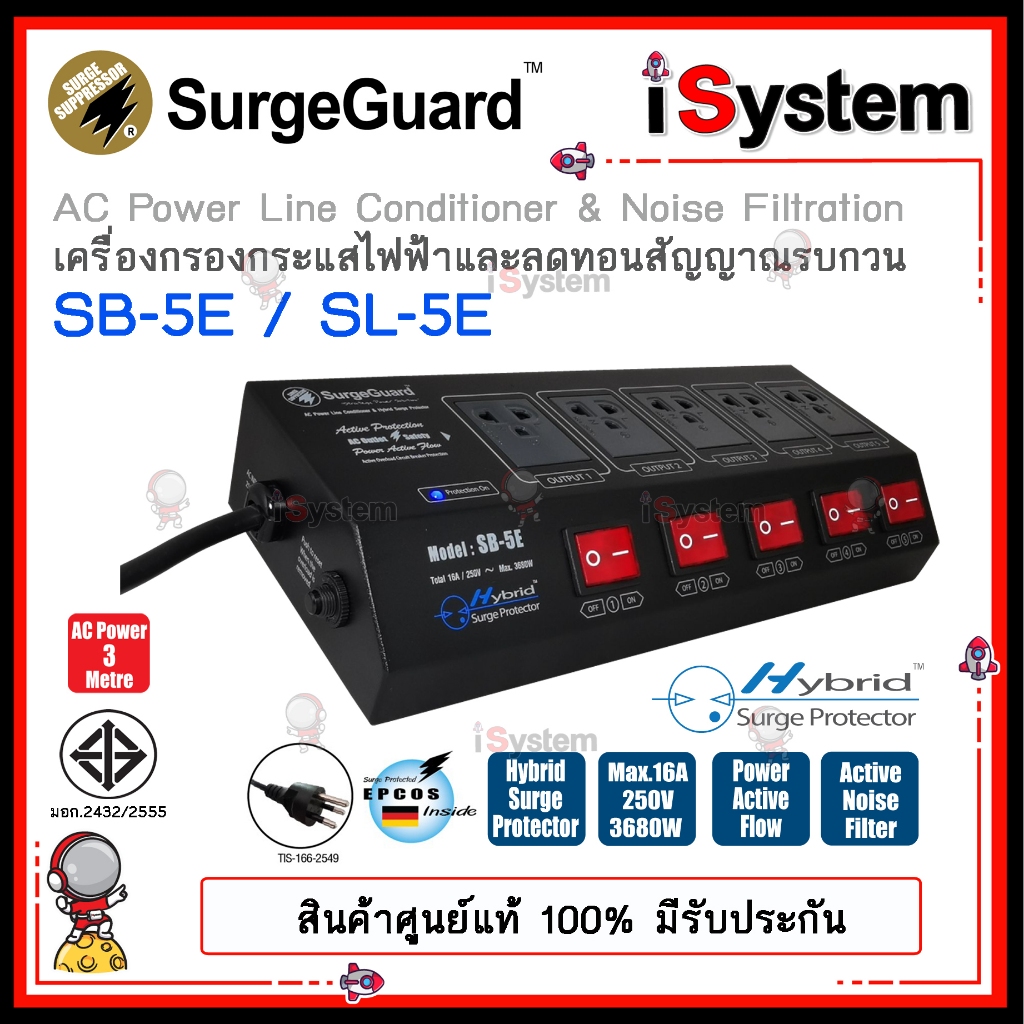 SurgeGuard SB-3E 3 ช่อง SB-5E 5 ช่อง TIS มอก. ปลั๊กกรองไฟ กันไฟกระชาก จำหน่ายโดย iSystem