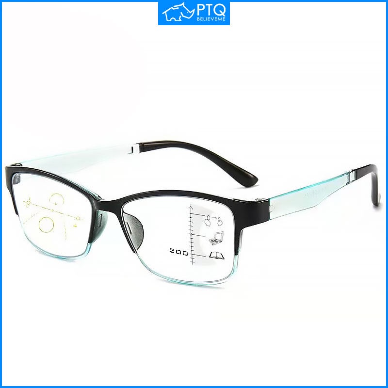 Ptq แว่นตาอ่านหนังสือ โฟกัสหลายโฟกัส ซูมง่าย ใกล้ และไกล ป้องกันแสงสีฟ้า สําหรับผู้ชาย ผู้หญิง ทุกเพศ 100 150 200 250 300 350 400