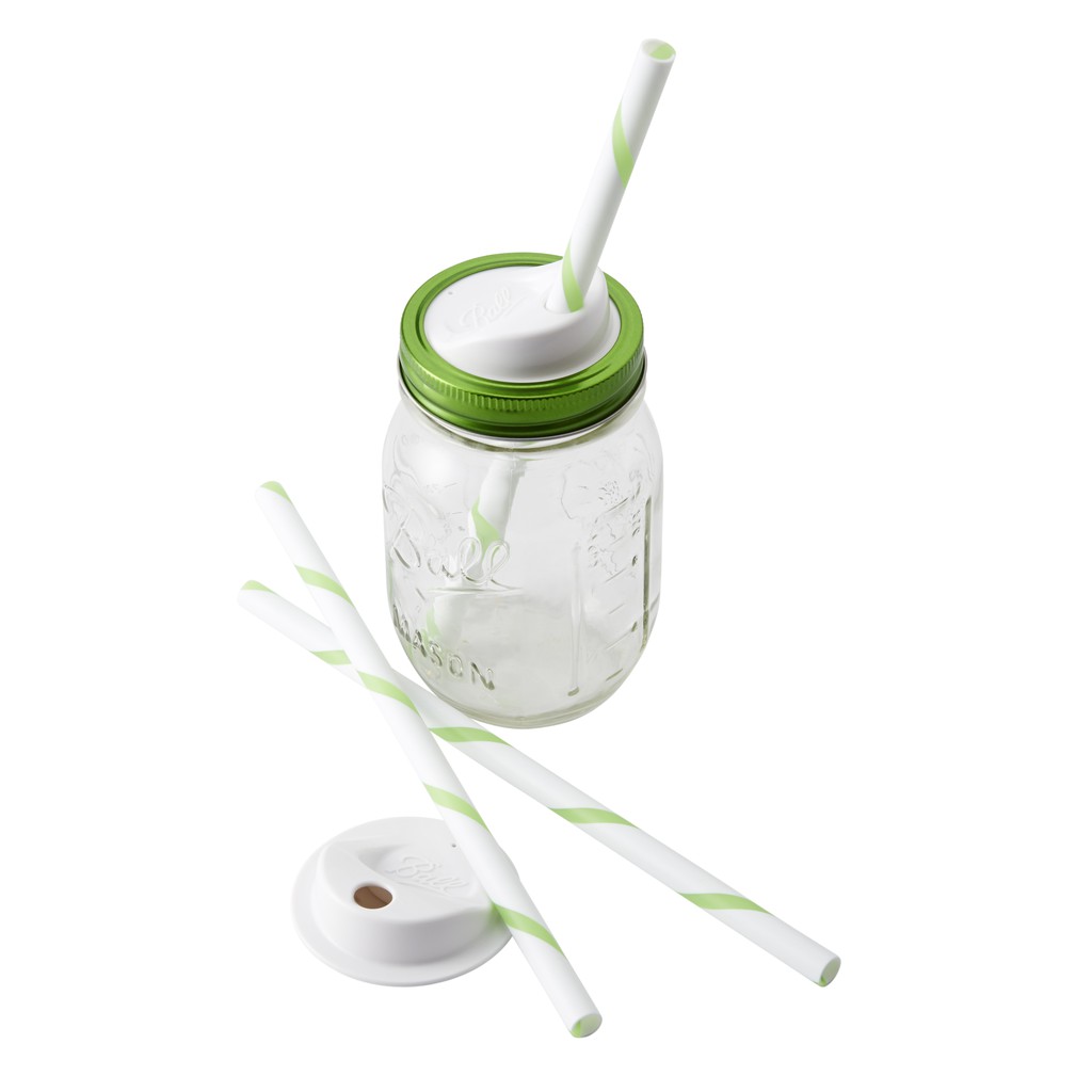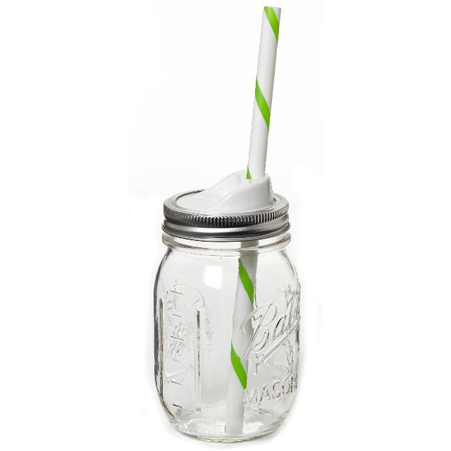 Ball 15000 Mason Jar SIP&STRAW Lids Regular Mouth 2.5" ฝาปิด 2.5 นิ้ว พร้อมหลอด ฝาพลาสติก สีขาว สำหรับขวดโหลแก้วบอลล์