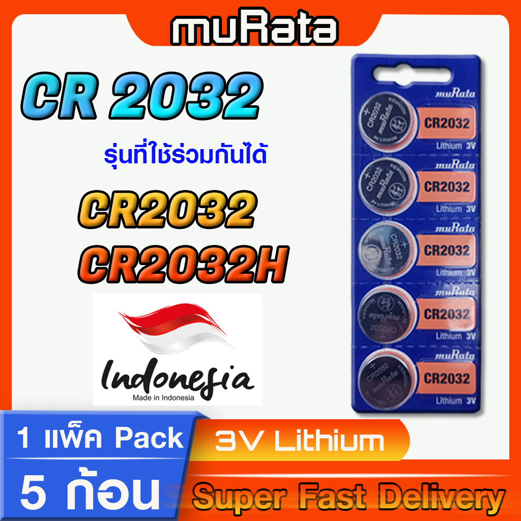 ถ่านกระดุม แท้ล้าน% muRata cr2032(คำเตือน! กรุณาดูคลิปYoutube ก่อนสั่งซื้อ) 1แพ็ค 5เม็ด ออกใบกำกับภาษีได้นะครับ