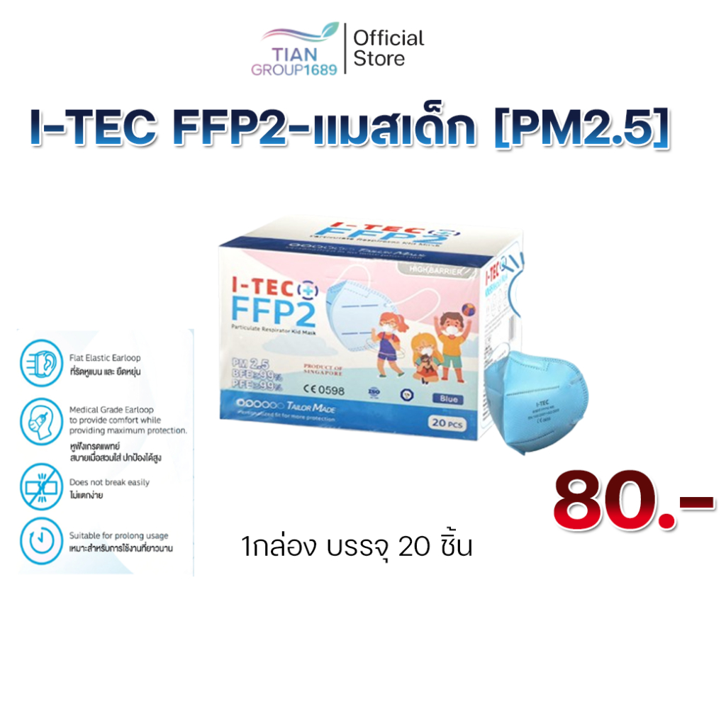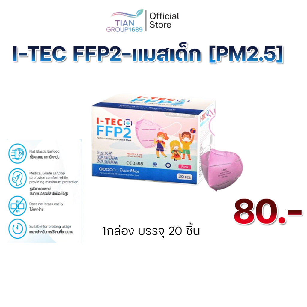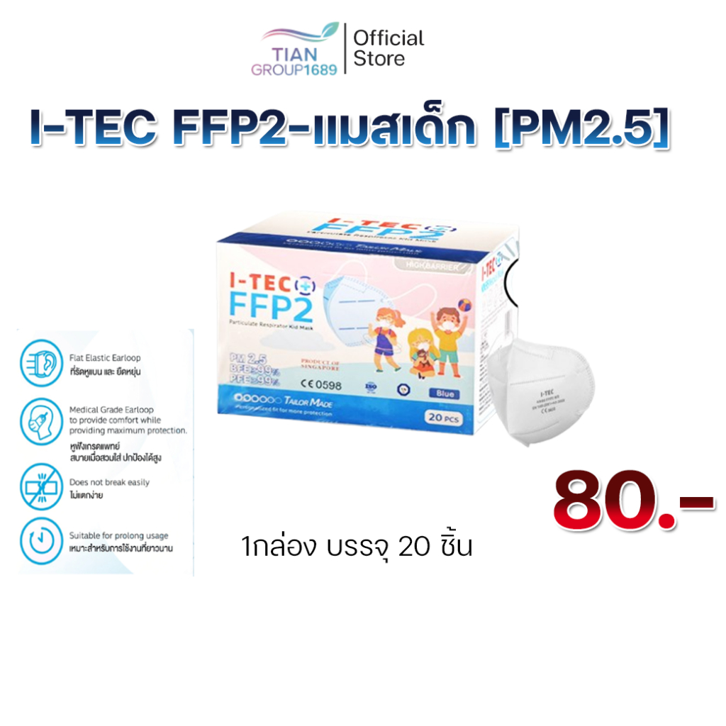 I-TEC FFP2-แมสเด็ก [PM2.5] 20 ชิ้น ปลอดภัยต่อผิว ป้องกันฝุ่นละอองทีมีขนาดเล็ก