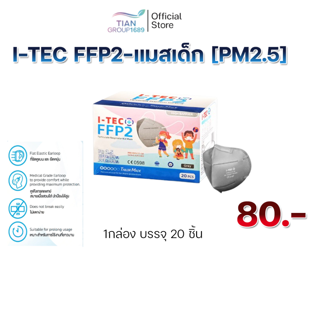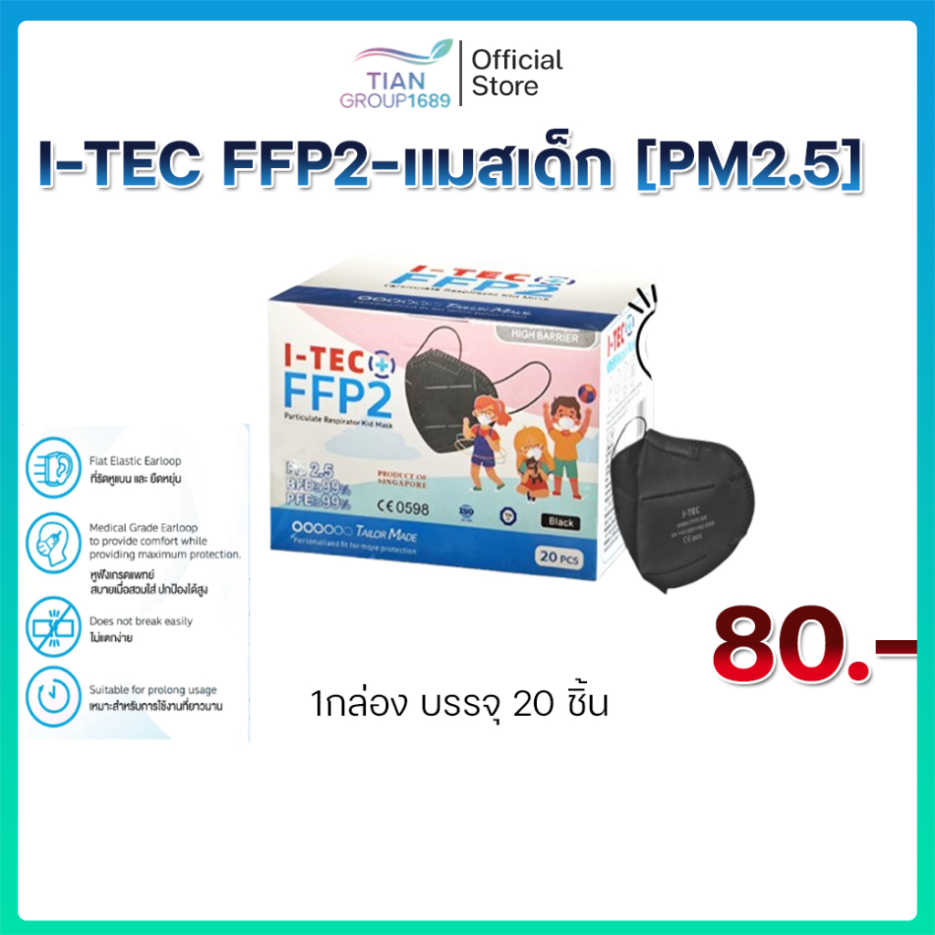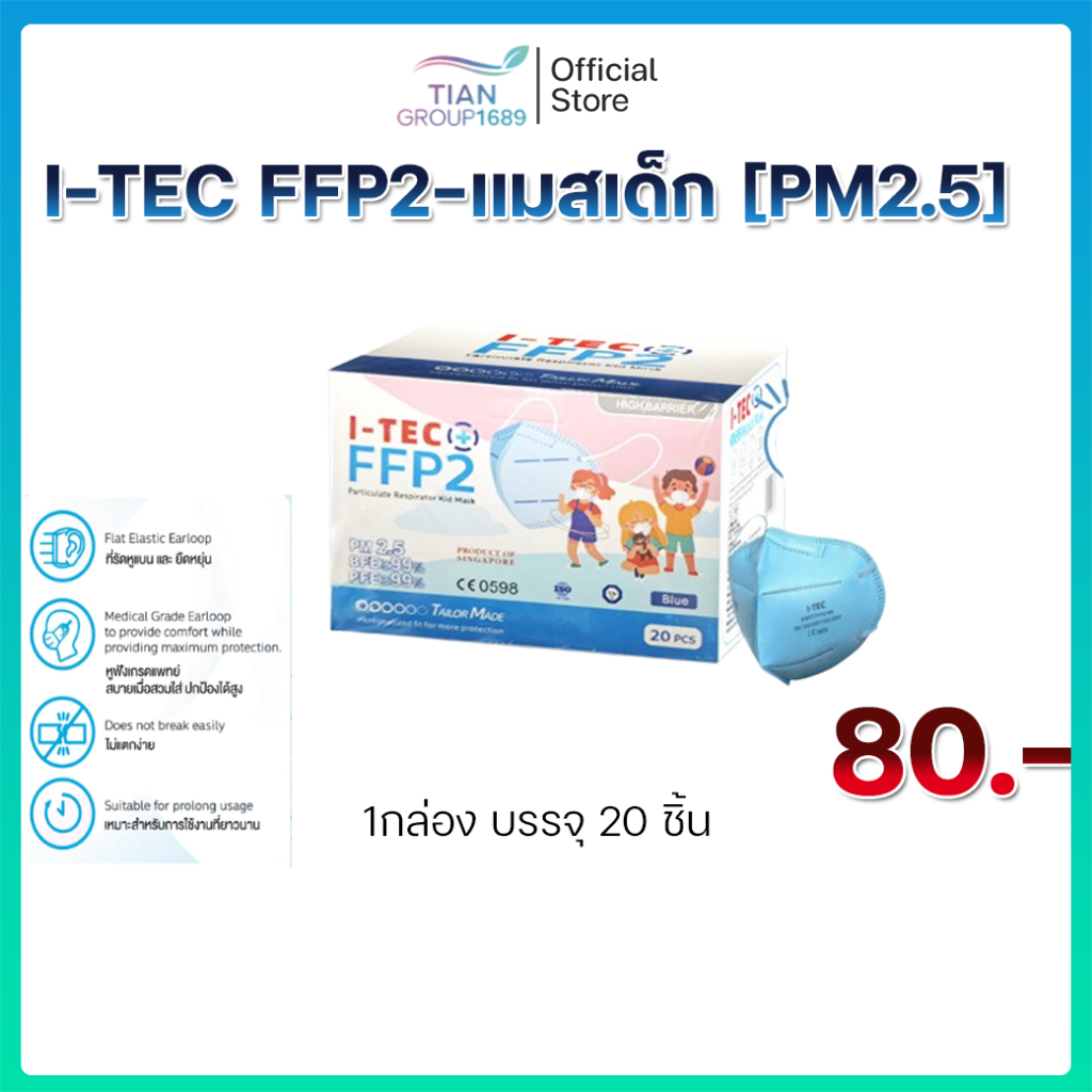 I-TEC FFP2-แมสเด็ก [PM2.5] 20 ชิ้น ปลอดภัยต่อผิว ป้องกันฝุ่นละอองทีมีขนาดเล็ก