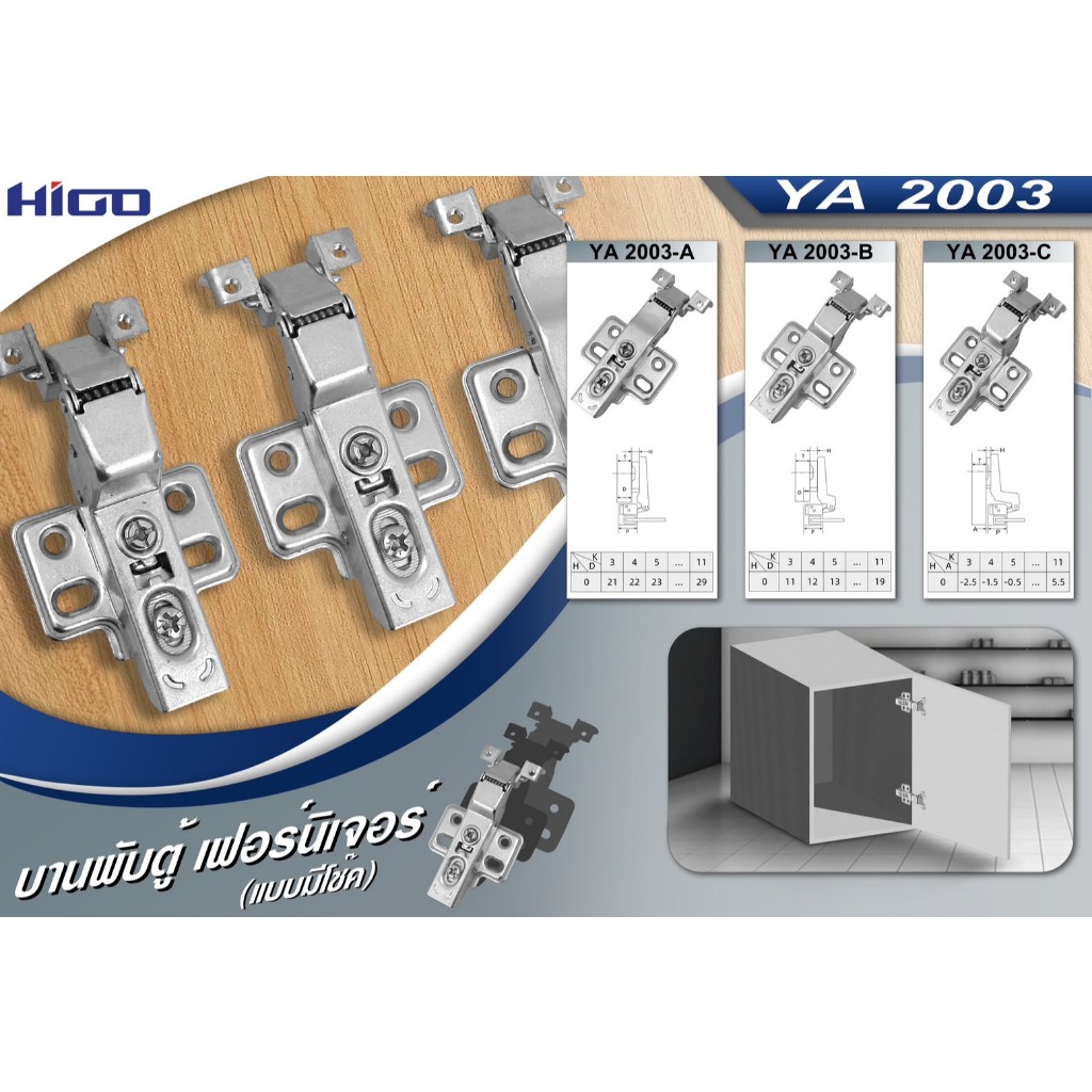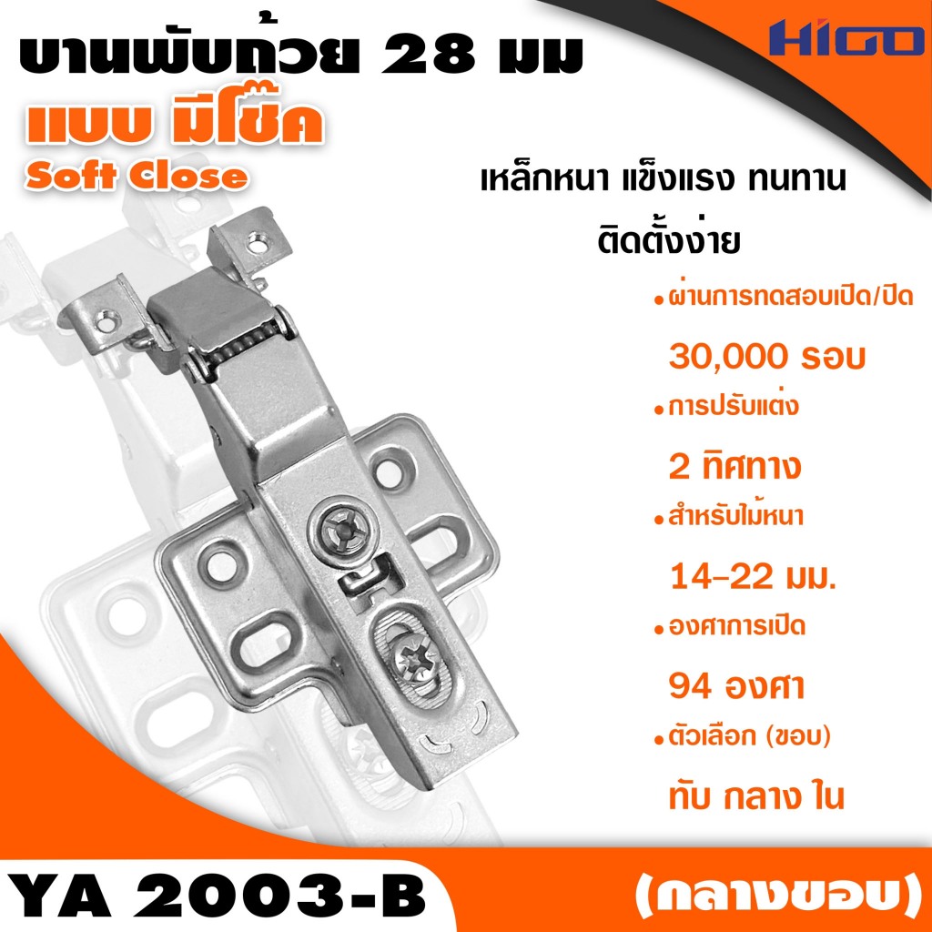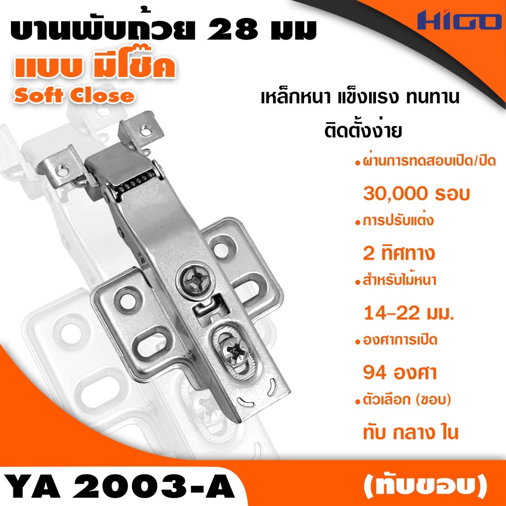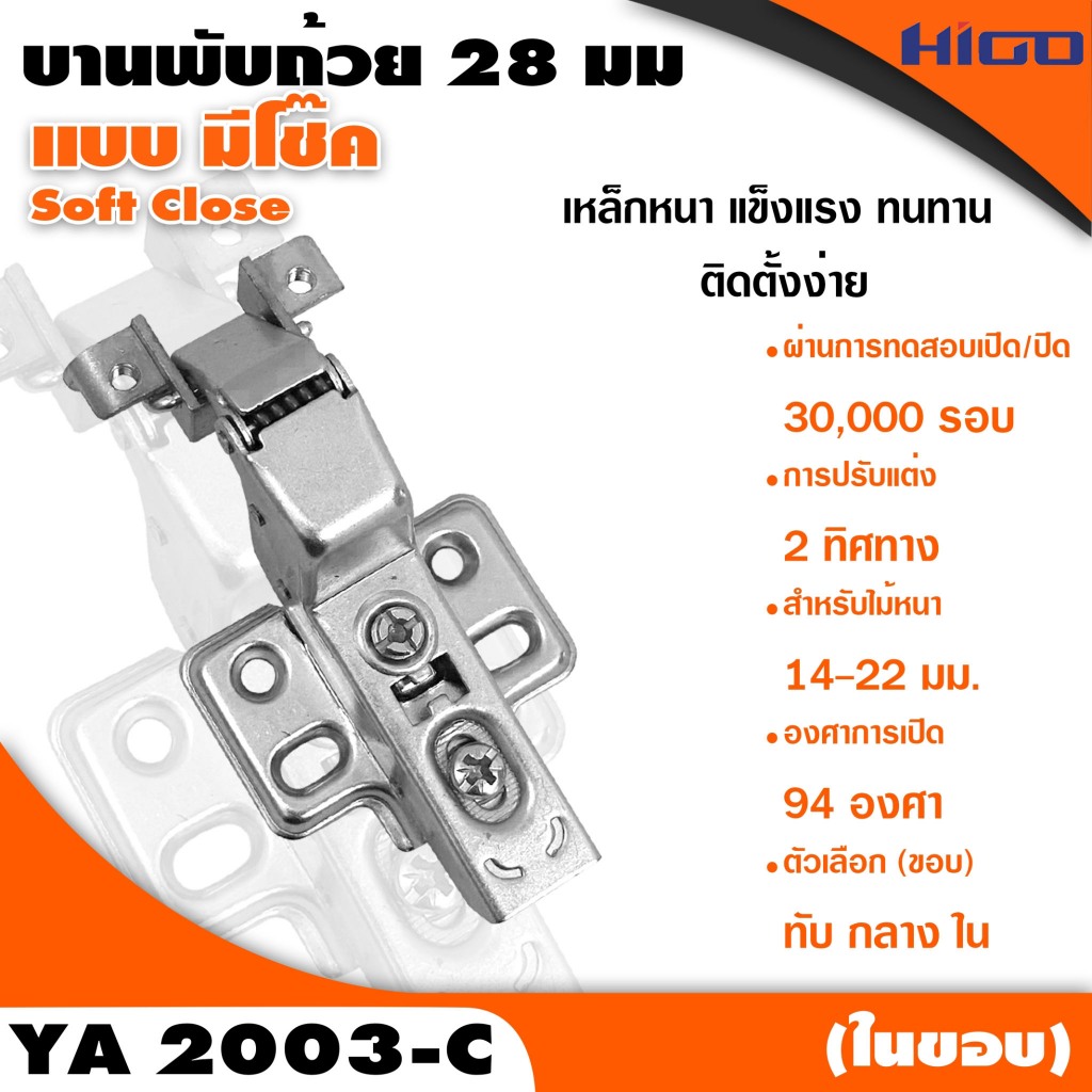 บานพับถ้วย 28 มม. (YA2003) Soft Close + Clip On เฟรมอลูมิเนียม ถอดฐานได้ - fittingshub
