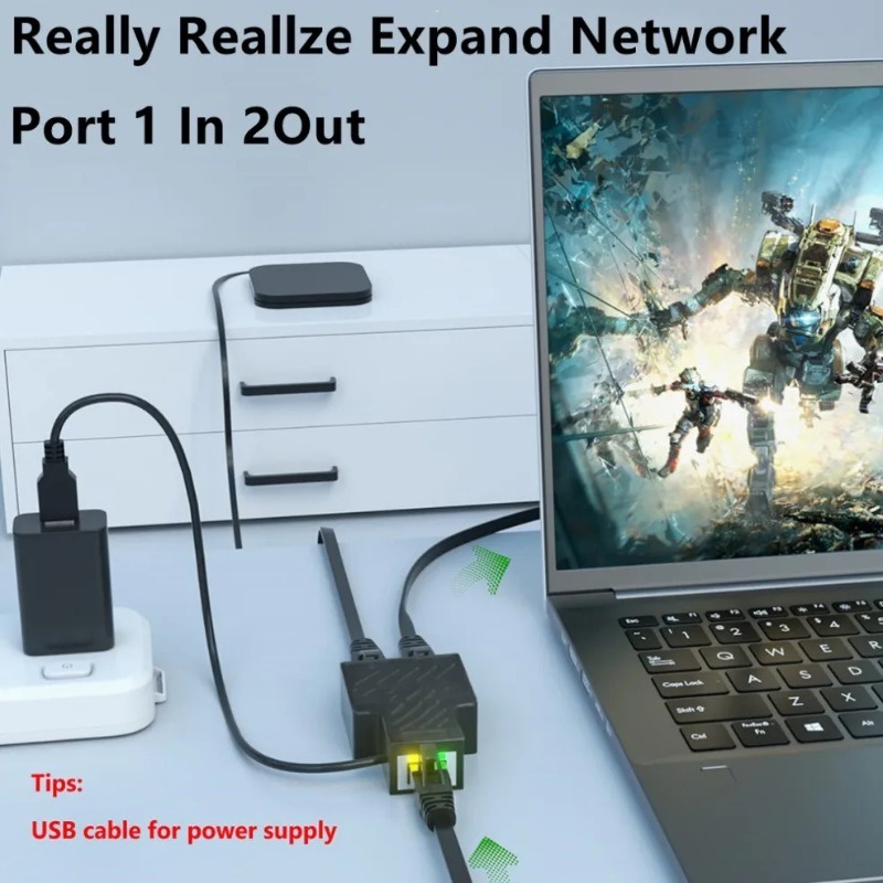 Gigabit ตัวแยกสายเครือข่ายอีเธอร์เน็ต LAN RJ45 เข้า 1 ออก 2 100 ม. 1000 ม. สําหรับแล็ปท็อป 2 ชิ้น