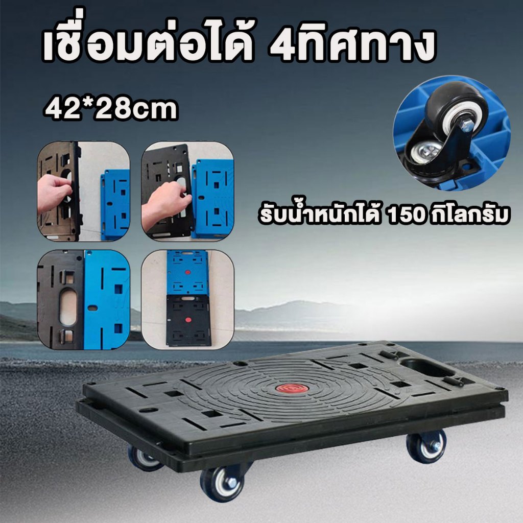 รับน้ำหนักได้ 150 กิโลกรัม รถเข็น 4 ล้อ รถเข็นดอลลี่ ต่อเป็นแพได้ เสียงเงียบ ชื่อมต่อได้ 4ทิศทาง 42x28cm
