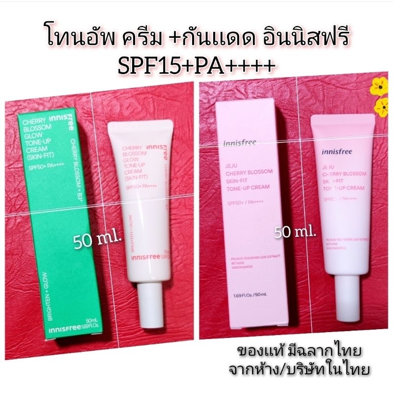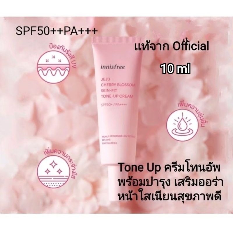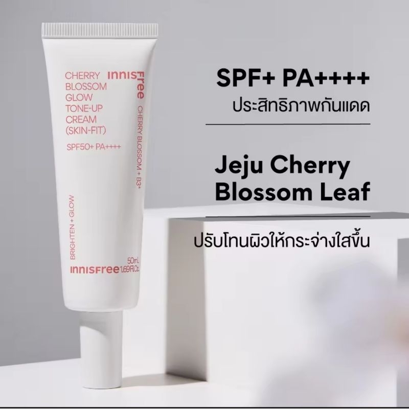(50ml./10ml.)ครีมกันเเดด+โทนอัพ Innisfree JeJu Cherry Blossom Skin-Fit Tone Up Cream เชอรี่บลอสซั่มโทนอัพ SPF50+ PA++++