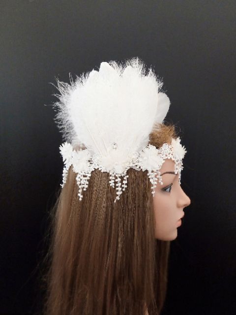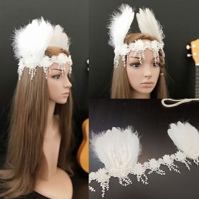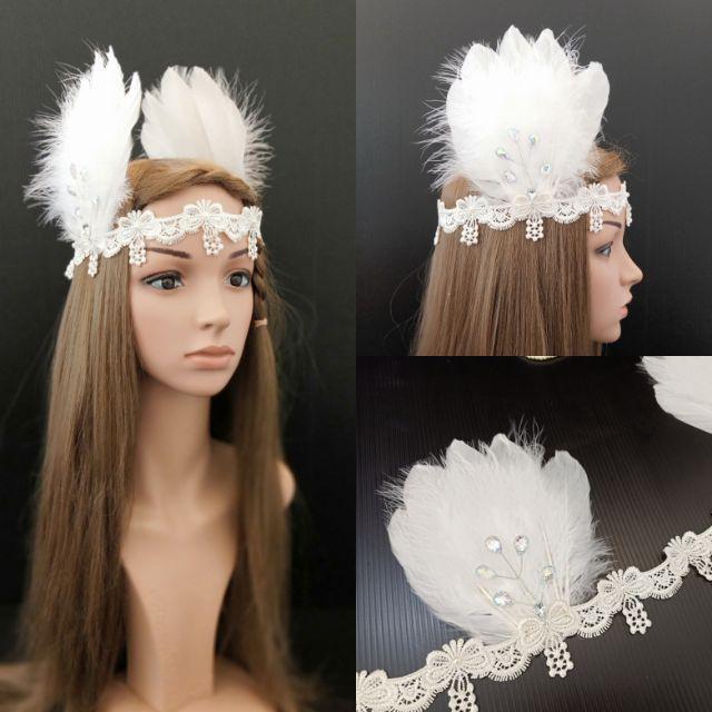 ที่คาดผมขนนก คาดผมนางฟ้า คาดผมขนนก คาดผมขนไก่ คาดผมขนนก สีขาว คาดผมแก็สบี้ แต่งลูกไม้สีขาว