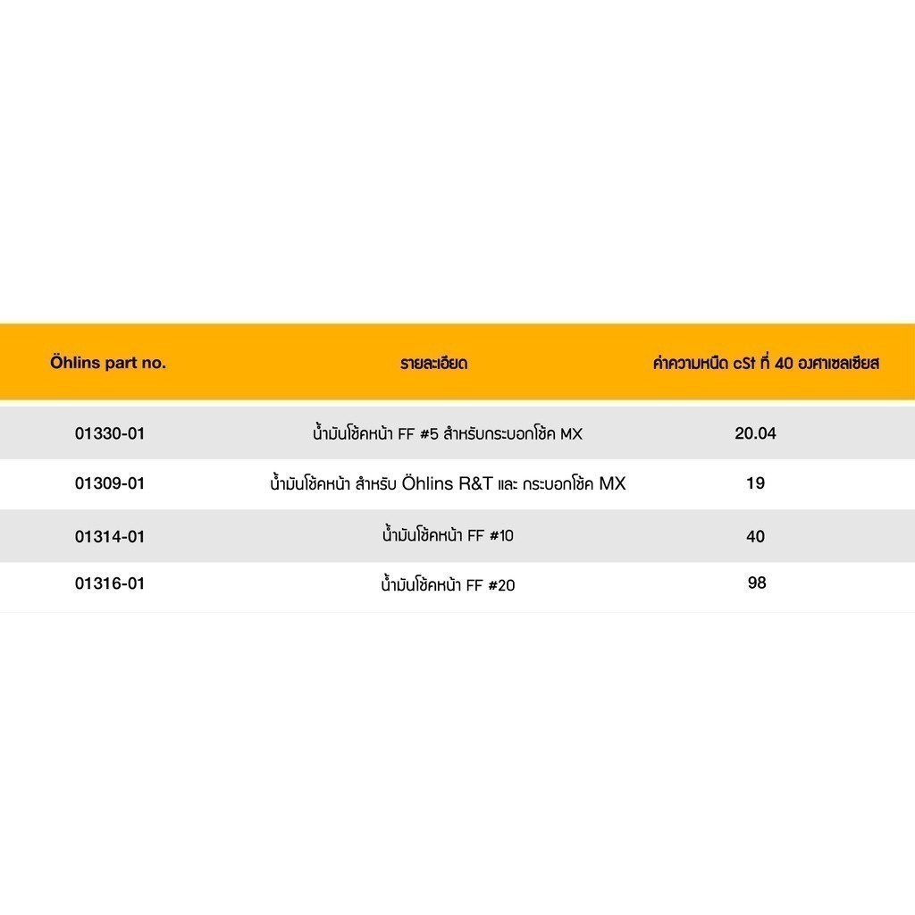 **เบอร์ 20 (เทียบเท่า 40W)** น้ำมันโช้ค ประสิทธิภาพสูง OHLINS High Performance Front Fork Fluid | Oil2U